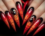 - Halloween Press on Nails Long Stiletto Fake Nails Orange Spider Web Design