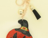 Halloween bag charm with rhinestones, pumpkin design, and tassel