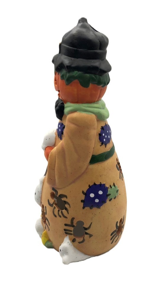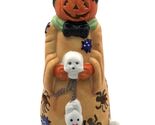 - Halloween Pumpkin With Ghosts and Spiders Candle Holder 6" Figure