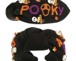 Celebrate Halloween with this bold top knot headband featuring a beaded “Spooky” skull sign design. Crystal seed beads add texture and shine, while the cushioned fit ensures comfort for costumes, parades, or festive photo shoots. A standout hair accessory that delivers both sparkle and spooky charm.
