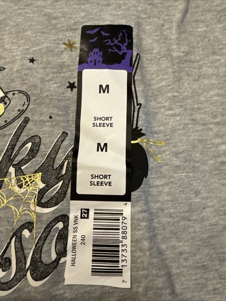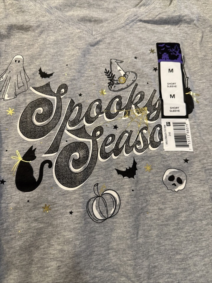 - Halloween Spooky Season V-Neck Heather Gray S/S T-Shirt Top Womens M