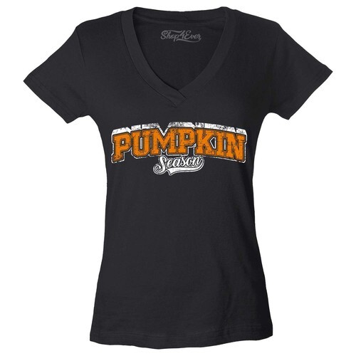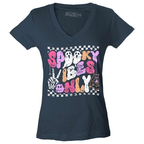 Halloween Spooky Season V-Neck Heather Gray S/S T-Shirt Top Womens M