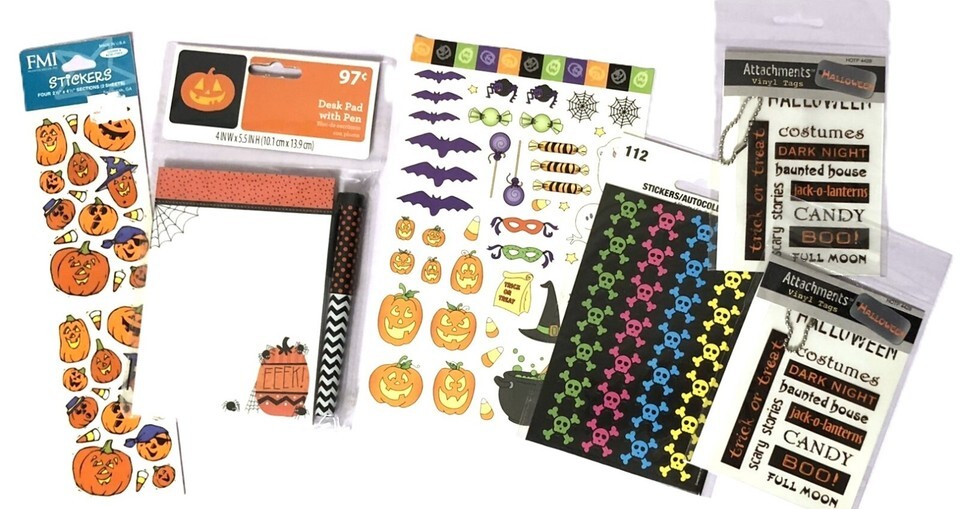 - Halloween Sticker, Pen, Paper Pad, Vinyl Tags for Kids Crafts