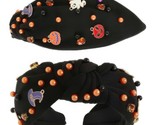 Get into the Halloween spirit with this playful top knot headband adorned with enamel pumpkin, ghost, and witch hat charms. Colorful crystal beads add a festive shimmer, while the cushioned design provides a comfortable, all-day fit. Whether for a costume party, school event, or festive outing, this charming headband brings seasonal fun to any look.
