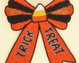 Hand-beaded “Trick Treat” lettering on ribbon bow