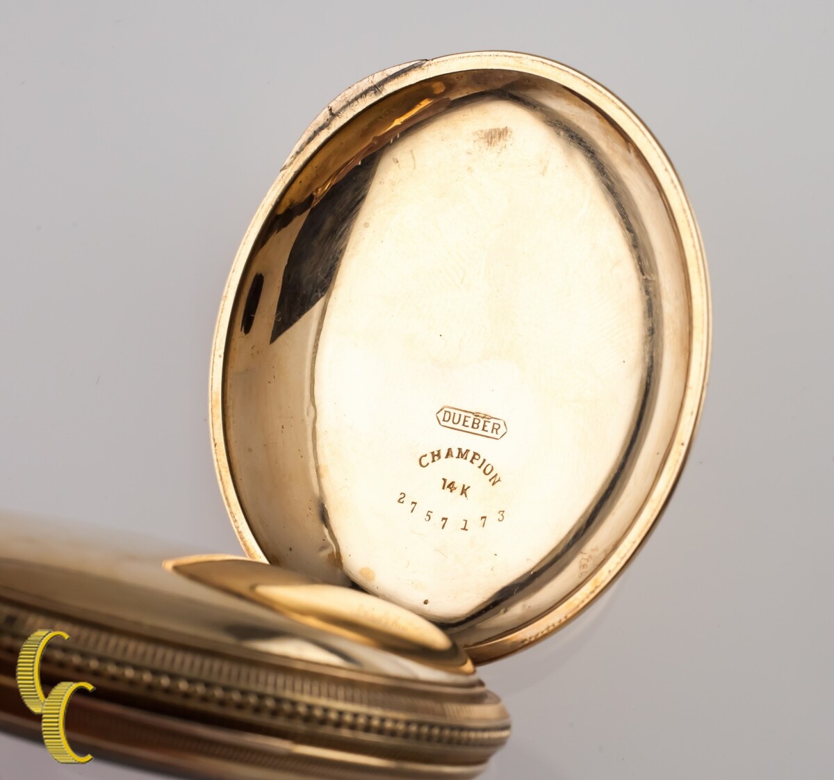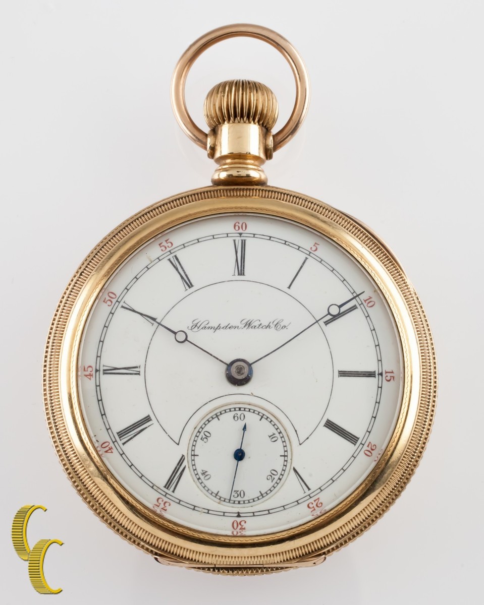 - Hampden Dueber 14K Gelbgold Gefüllt Offen Gesicht Taschenuhr 17 Juwelen Größe 18