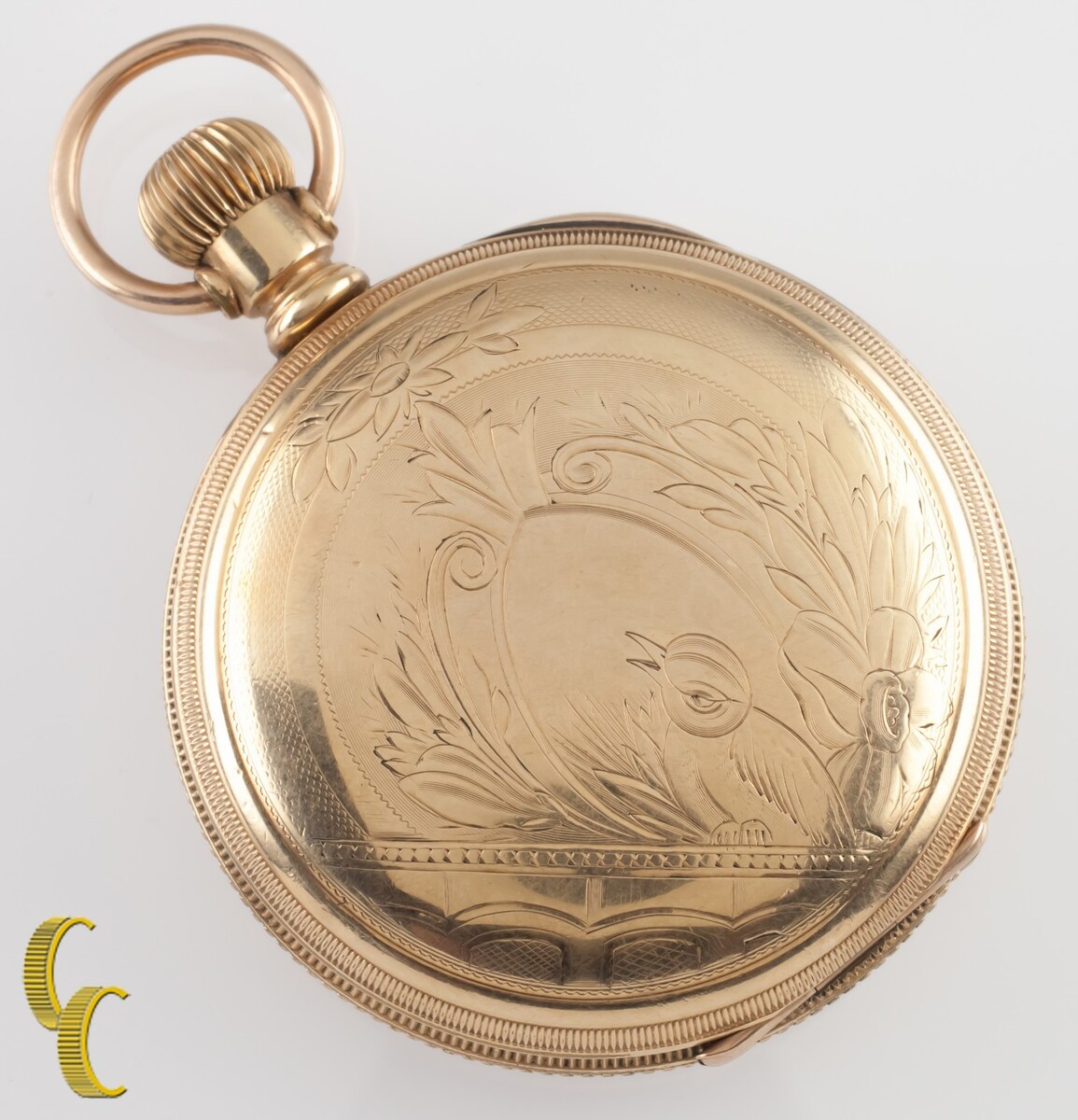 Hampden Dueber 14K Gelbgold Gefüllt Offen Gesicht Taschenuhr 17 Juwelen Große 18