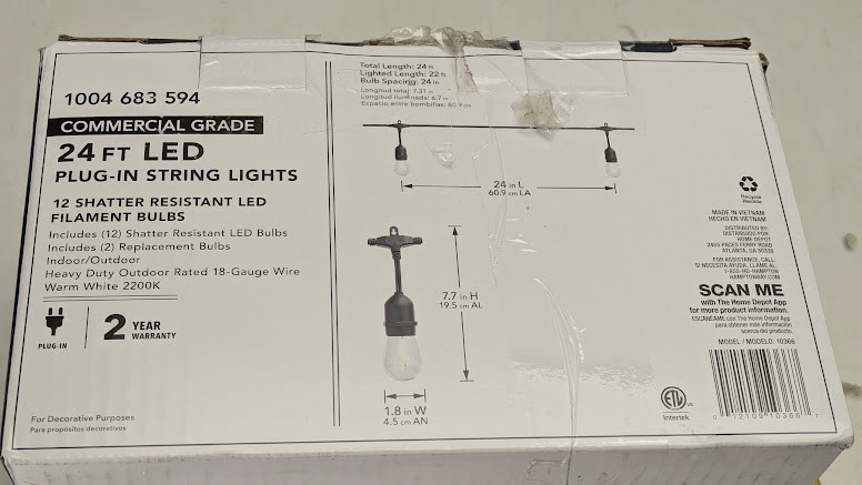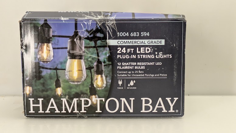 - Hampton Bay 12-Light 24 ft. Indoor/Outdoor String Light with S14 Single Filament
