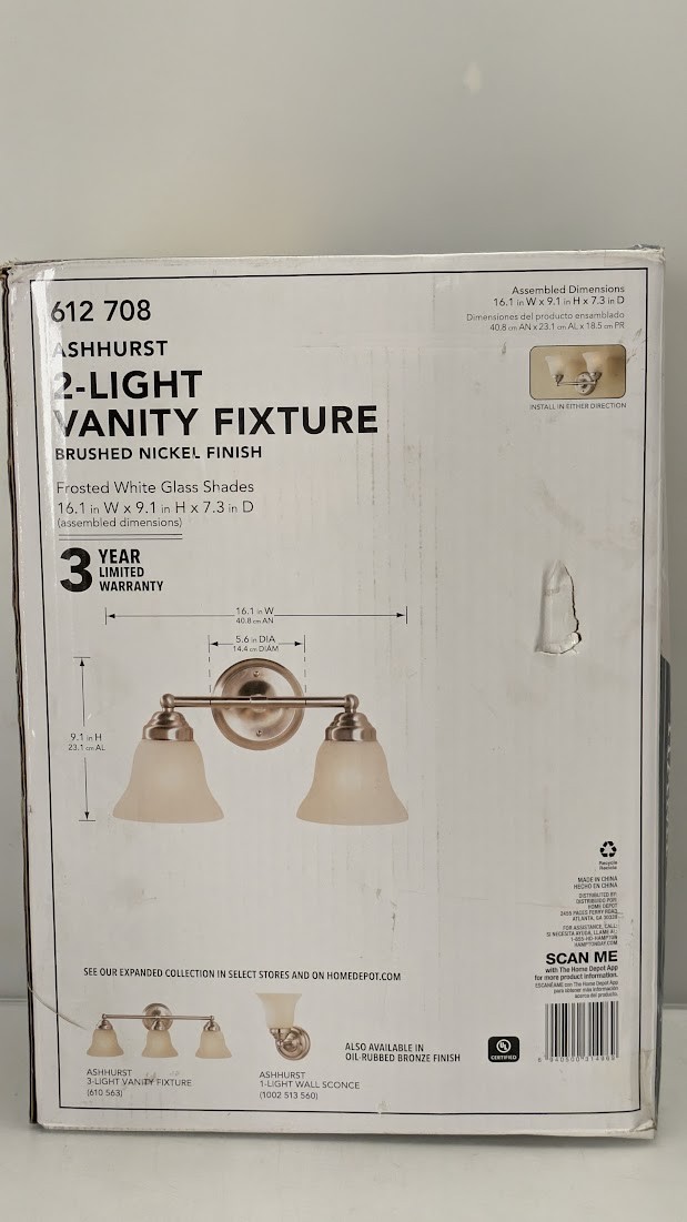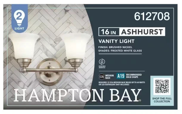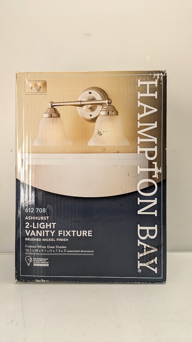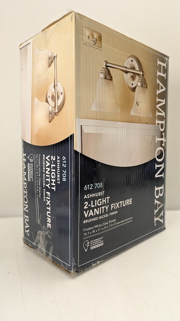 - Hampton Bay Ashhurst 2-Light Brushed Nickel Vanity Light Frosted Glass Shade