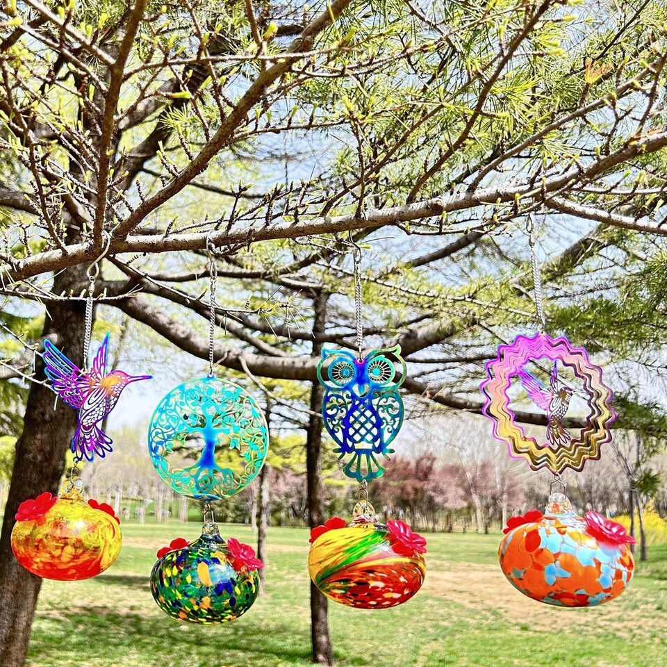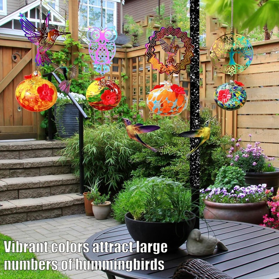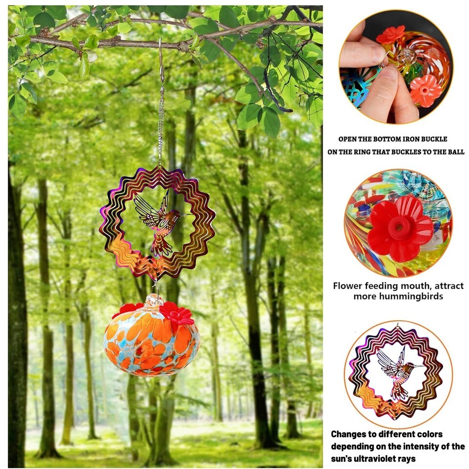 Nature's Beauty All Year Round Experience the fusion of beauty and purpose with our specially designed hummingbird feeders. It features a small baller that hangs securely from the animal charm for a charming effect. This dual function not only attracts hummingbirds, but also adds an element of charm to your outdoor decor. Enhance your space with the perfect combination of functionality and beauty. Our feeder transitions from a hummingbird haven to a stunning indoor decoration as the seasons change. Its elegant design and vibrant colors brighten your home, This isn't just a feeder; it's a year-round accent piece adding charm to your space. Why our hummingbird feeder ? 1.Each ball is skillfully crafted by experienced glassblowers. The small bubbles on the glass surface are sufficient to prove. Because of the way they are created, there are really no two that are ever exactly alike. 2.Gentle, flower feeder ports are more SAFE for hummers.Protect the hummingbirds' tongue. 3.We've chosen colors and patterns that are not just visually appealing, but also known to attract hummingbirds. Moreover, our materials are fade-resistant, ensuring that the feeders retain their enticing look season after season. Specifications: Main material: glass and metal Color: as shown in the picture Size: Glass ball: about 2.4 inch/ 6 cm in diameter Package Included: 1PCS * Hummingbird feeders Notes: 1.Please allow slight differences due to manual measurement. 2.Due to the different display and different light, the picture may not show the actual color of the item. Thanks for your understanding. If You Encounter Any Problems When Buying And Using Our Products, Please Contact Us In Time, We Will Serve You 24 Hours.