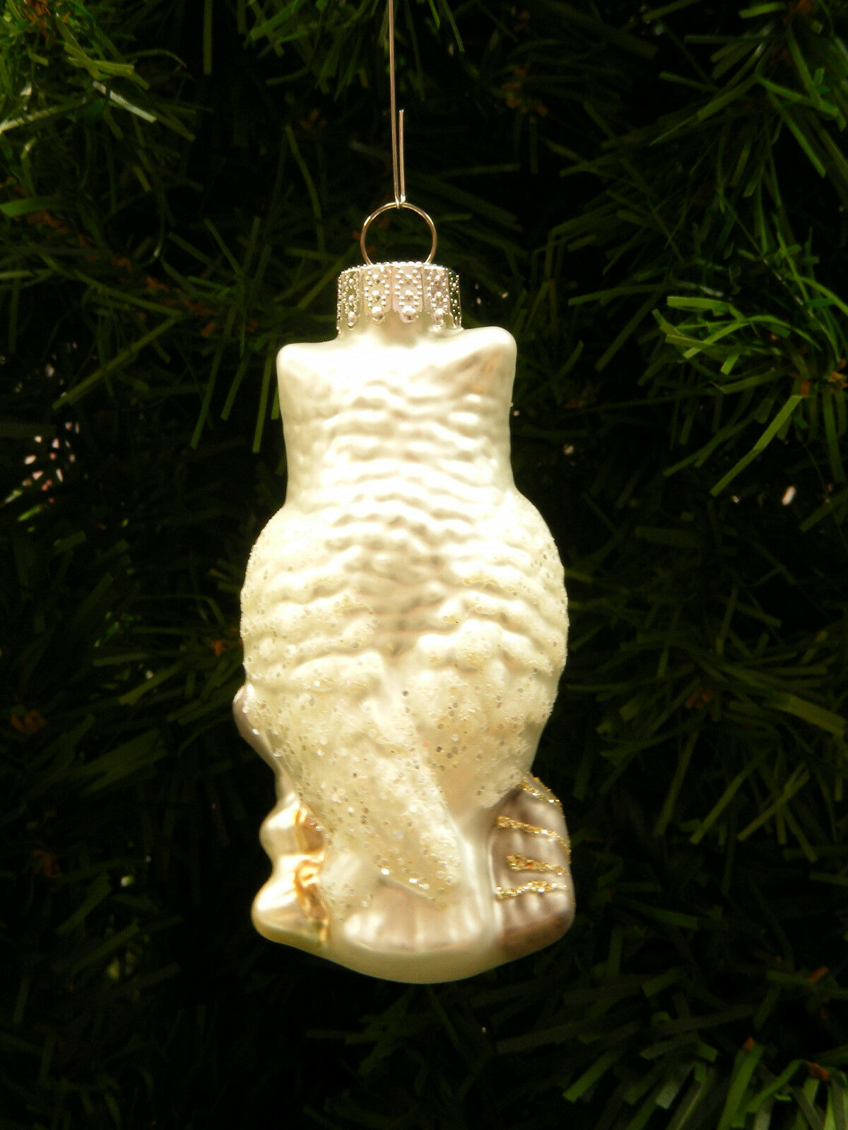 BRAND NEW never displayed CHRISTMAS VILLAGE HAND BLOWN MERCURY STYLE OWL PERCHED ON BRANCH CHRISTMAS ORNAMENT DECORATION!