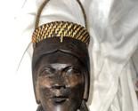The "Hand Carved African Wooden Basket VTG" is a medium-sized wooden basket featuring intricate carvings of women in an African style. Handmade from wood, this decorative collectible showcases the artistry of wood carving and African craftsmanship. Perfect for all occasions, this unique piece adds a touch of cultural charm to any space with its brown color and detailed carvings of people.