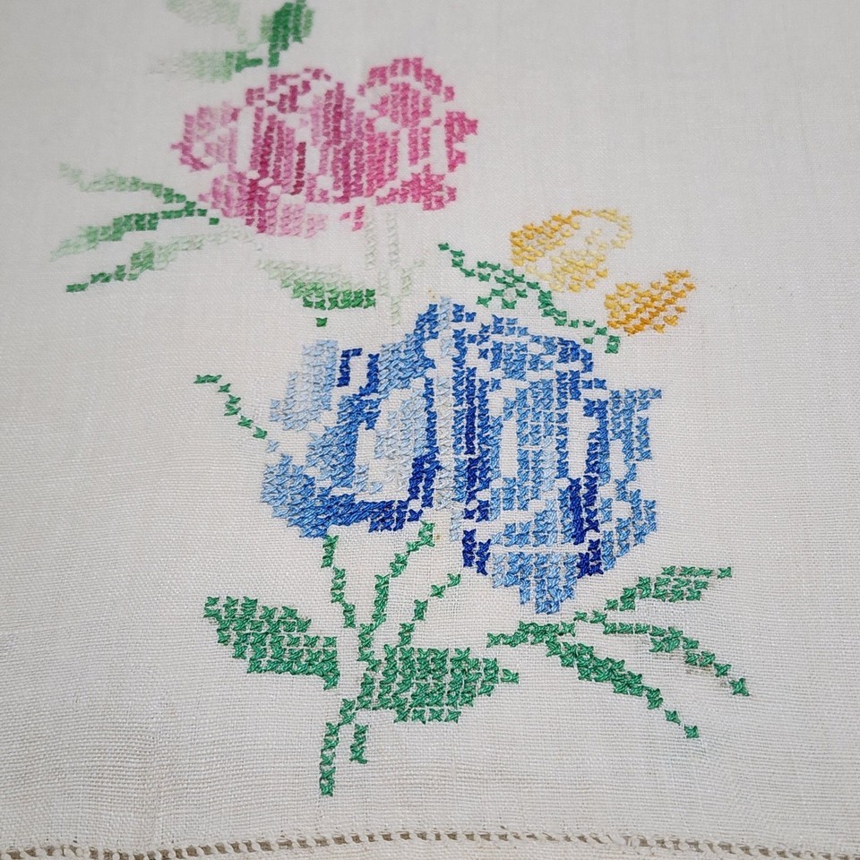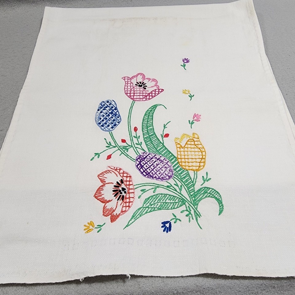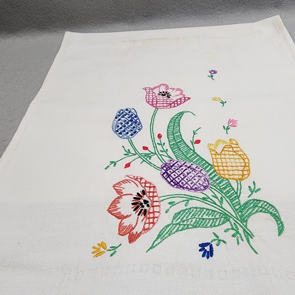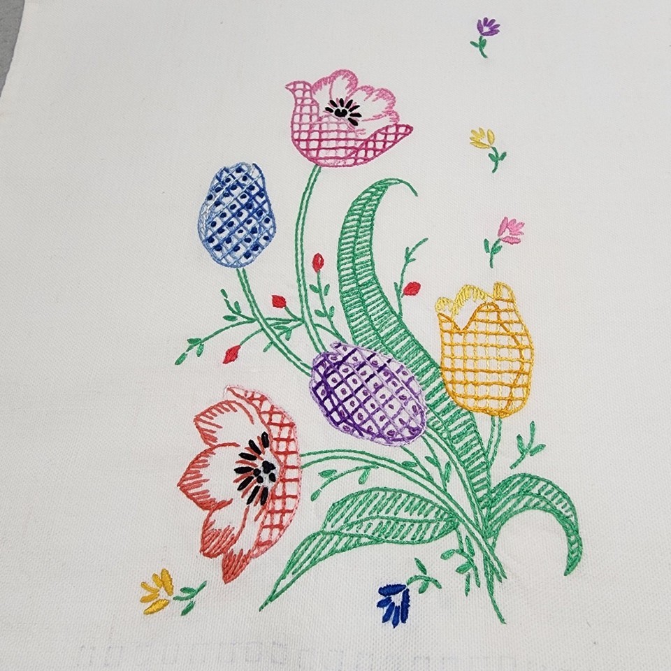 - Hand Embroidered TULIPS Cotton Linen Kitchen Hand Dish Towel 30"x13.5"