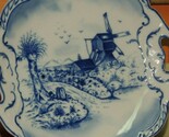 - Hand Painted 10" Plate w/ Handles Delft? Blue & White Windmill Antique Vintage
