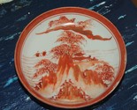 - Hand Painted 4.5" Dish China iron red gold mountain trees ships hut Kutani c1930