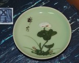 - Hand Painted 4.75" Dish poss Arita Celadon flower Fuku mark Edo c1900 Japan