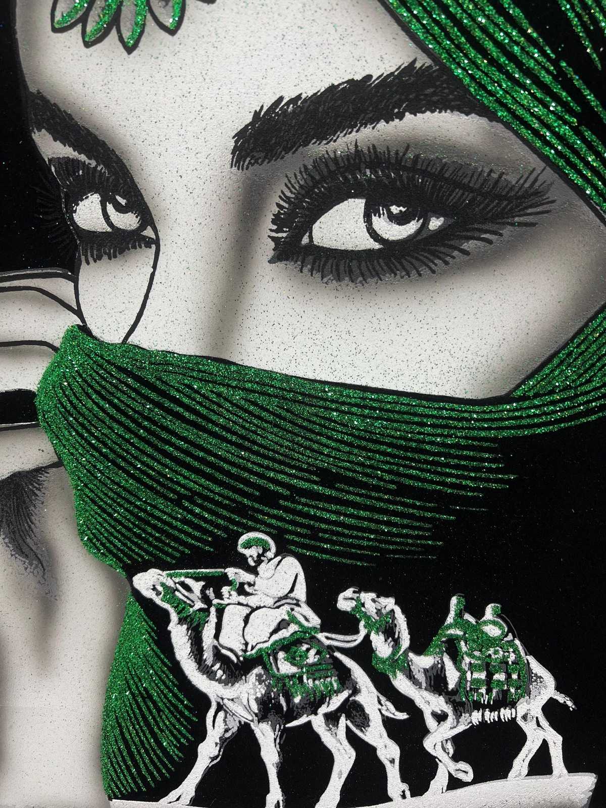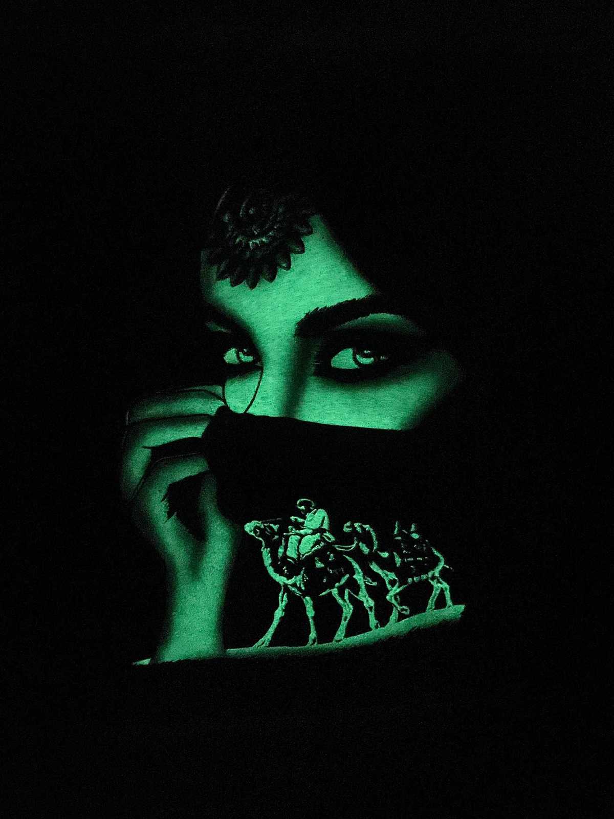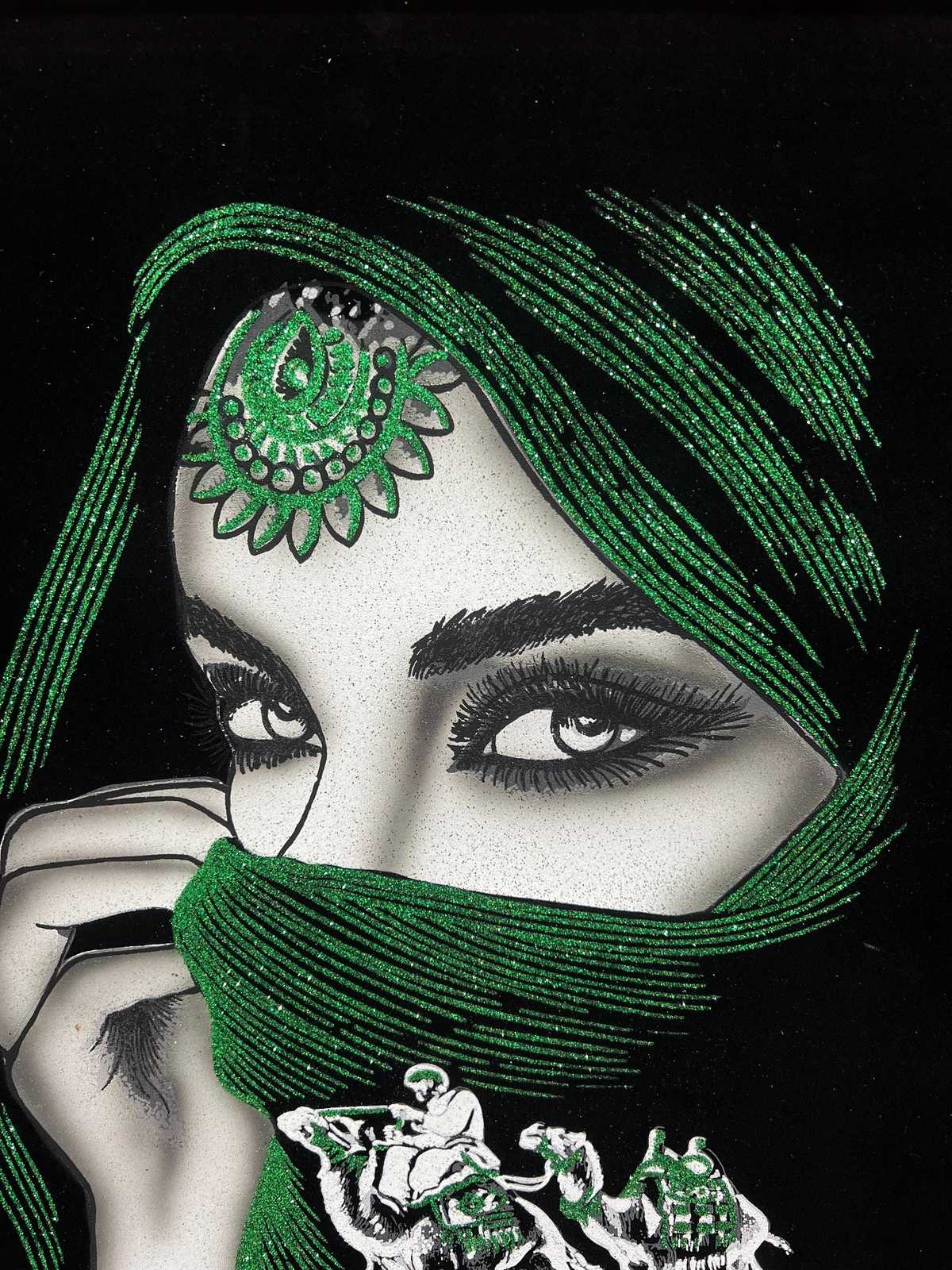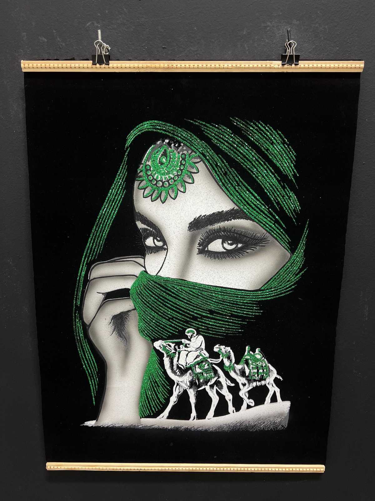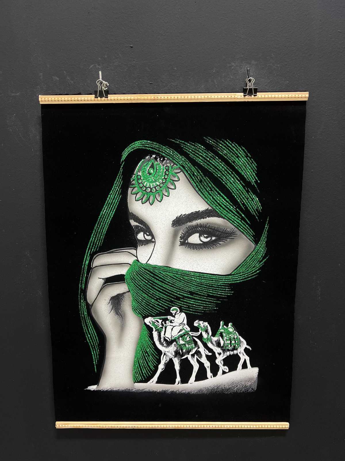 **Handmade Velvet Painting - "Bedouin Woman" (Glow in the Dark)**