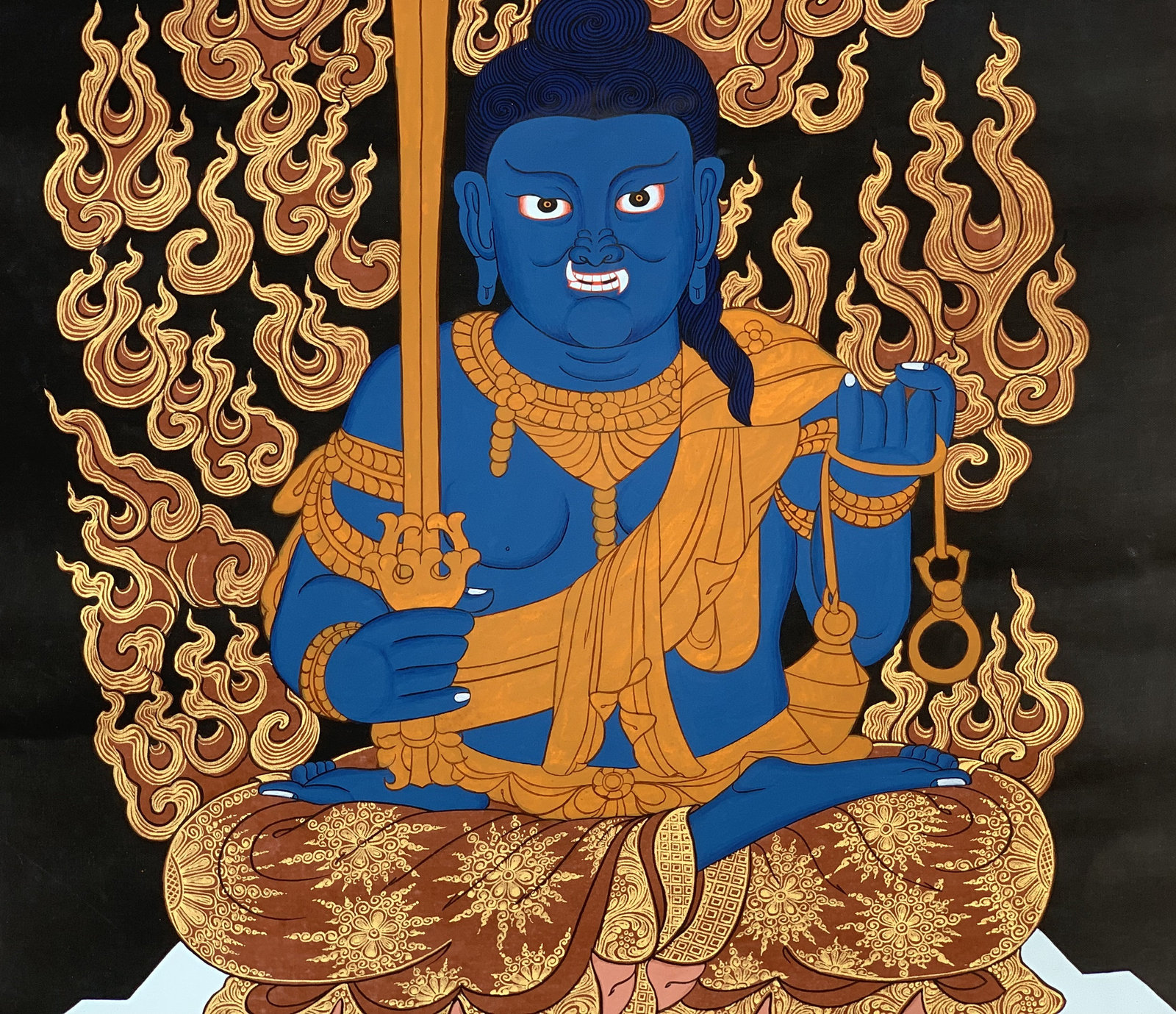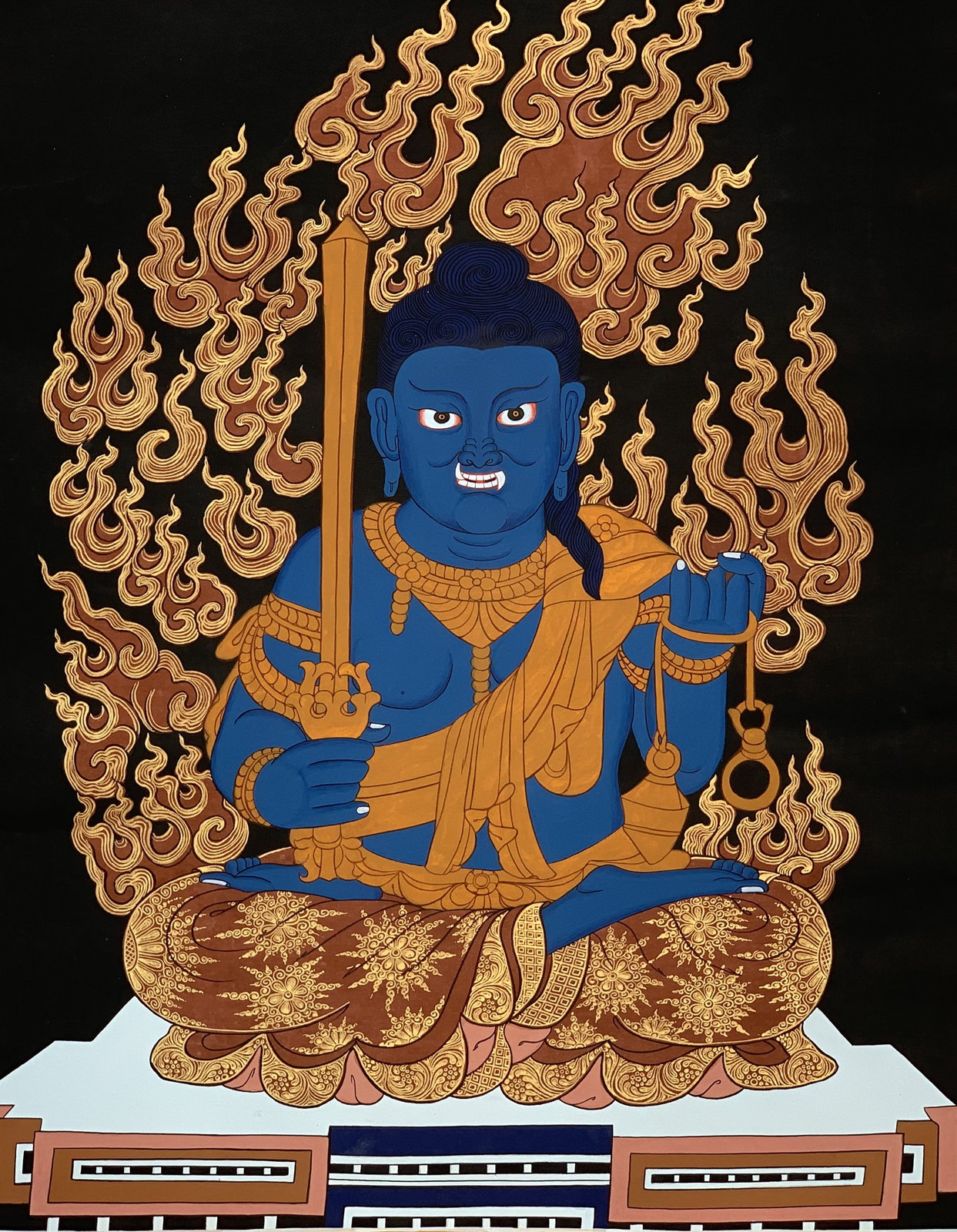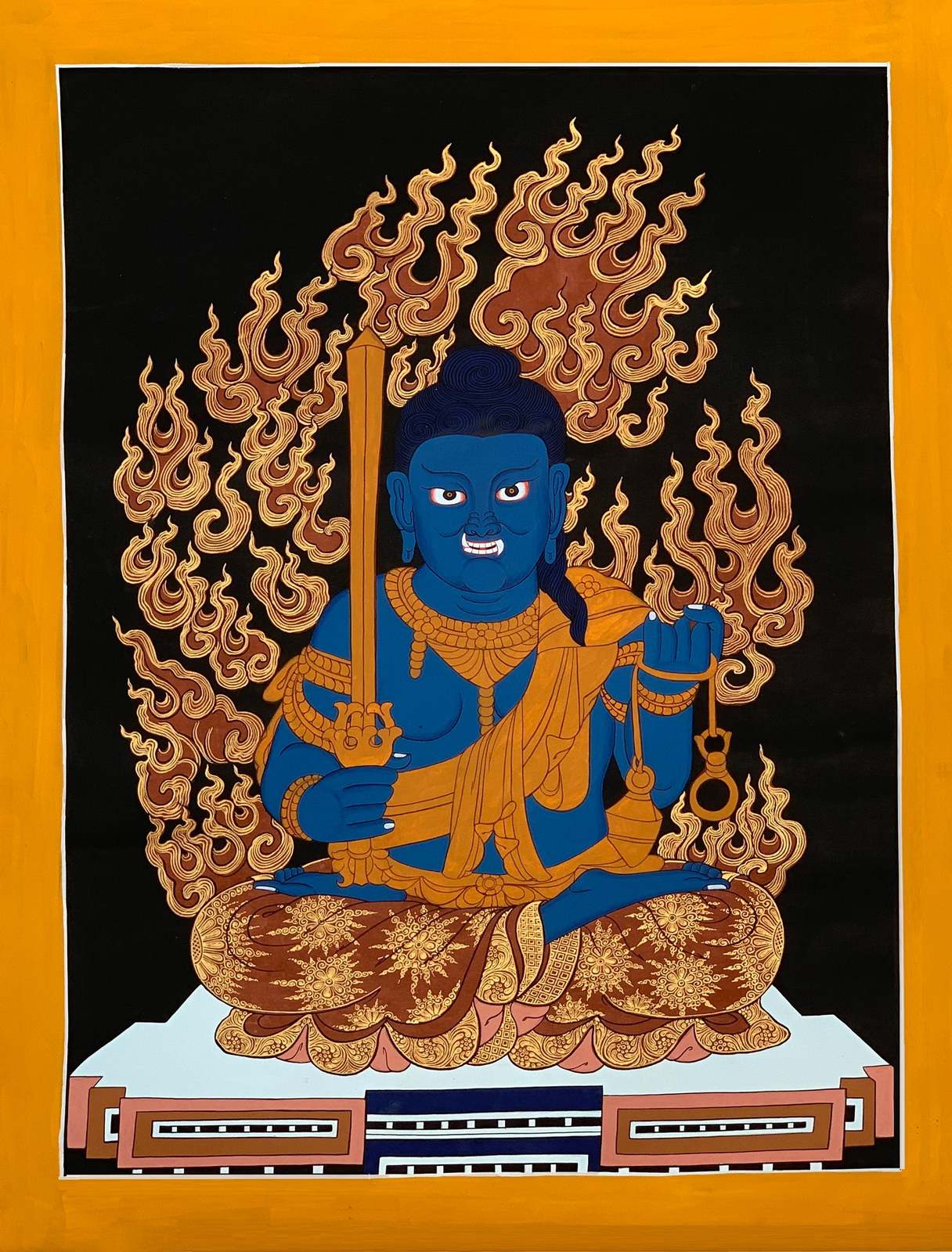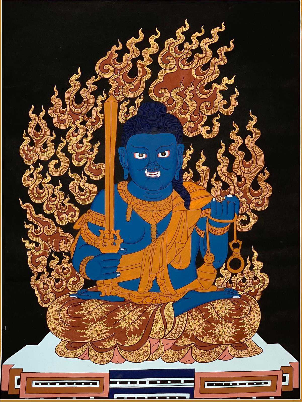 - Hand-Painted Fudo-Myo-o, Acala, Mantra King, Wisdom King, Thangka Art on Canvas,