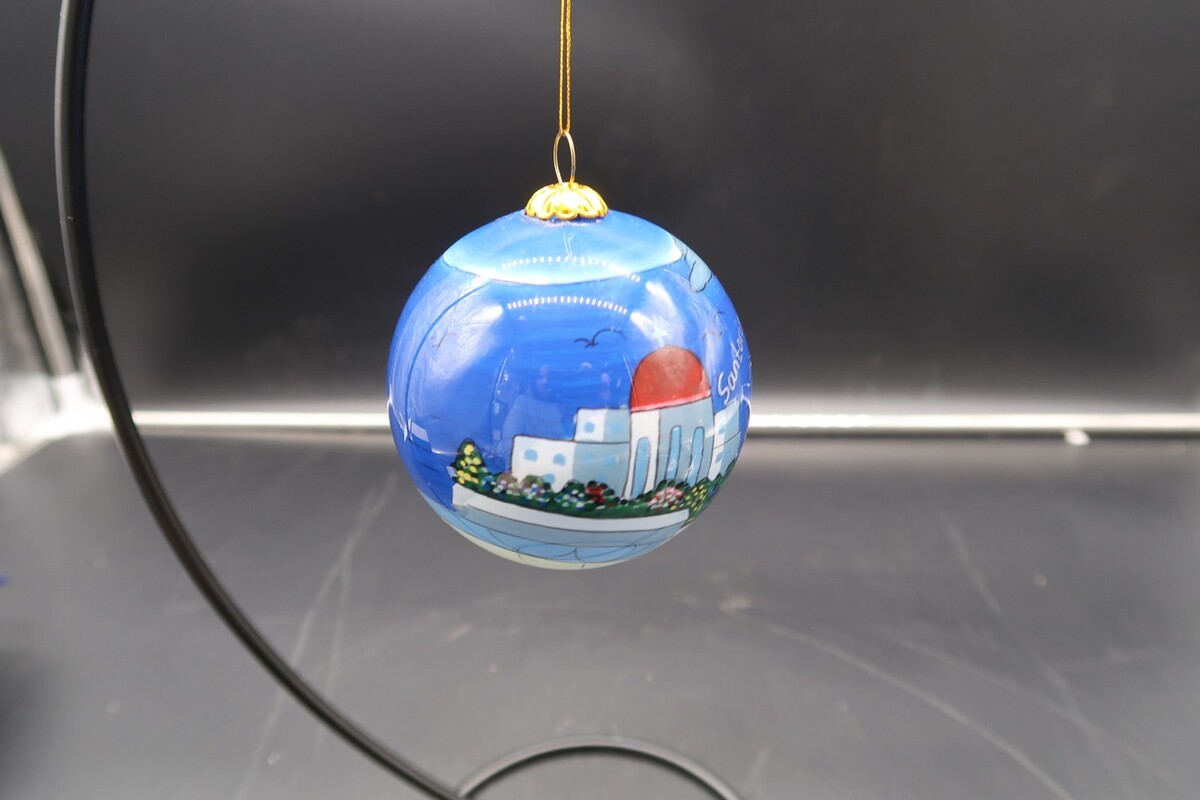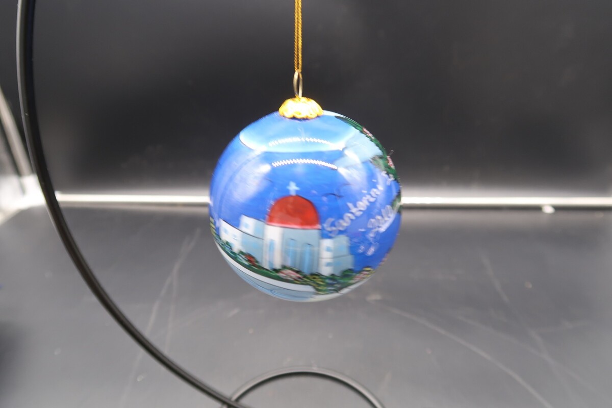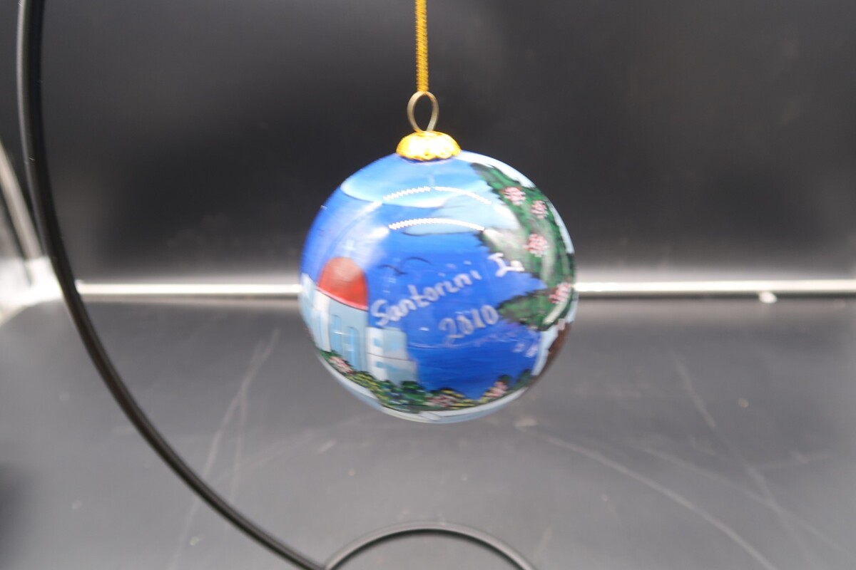 - Hand Painted Glass Christmas Ornament Santorini Island Greece 2010