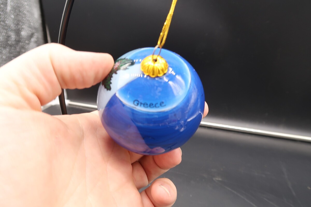 Hand Painted Glass Christmas Ornament Santorini Island Greece 2010