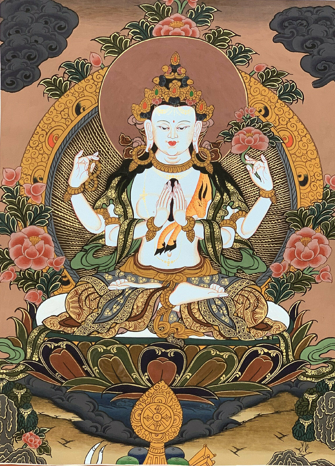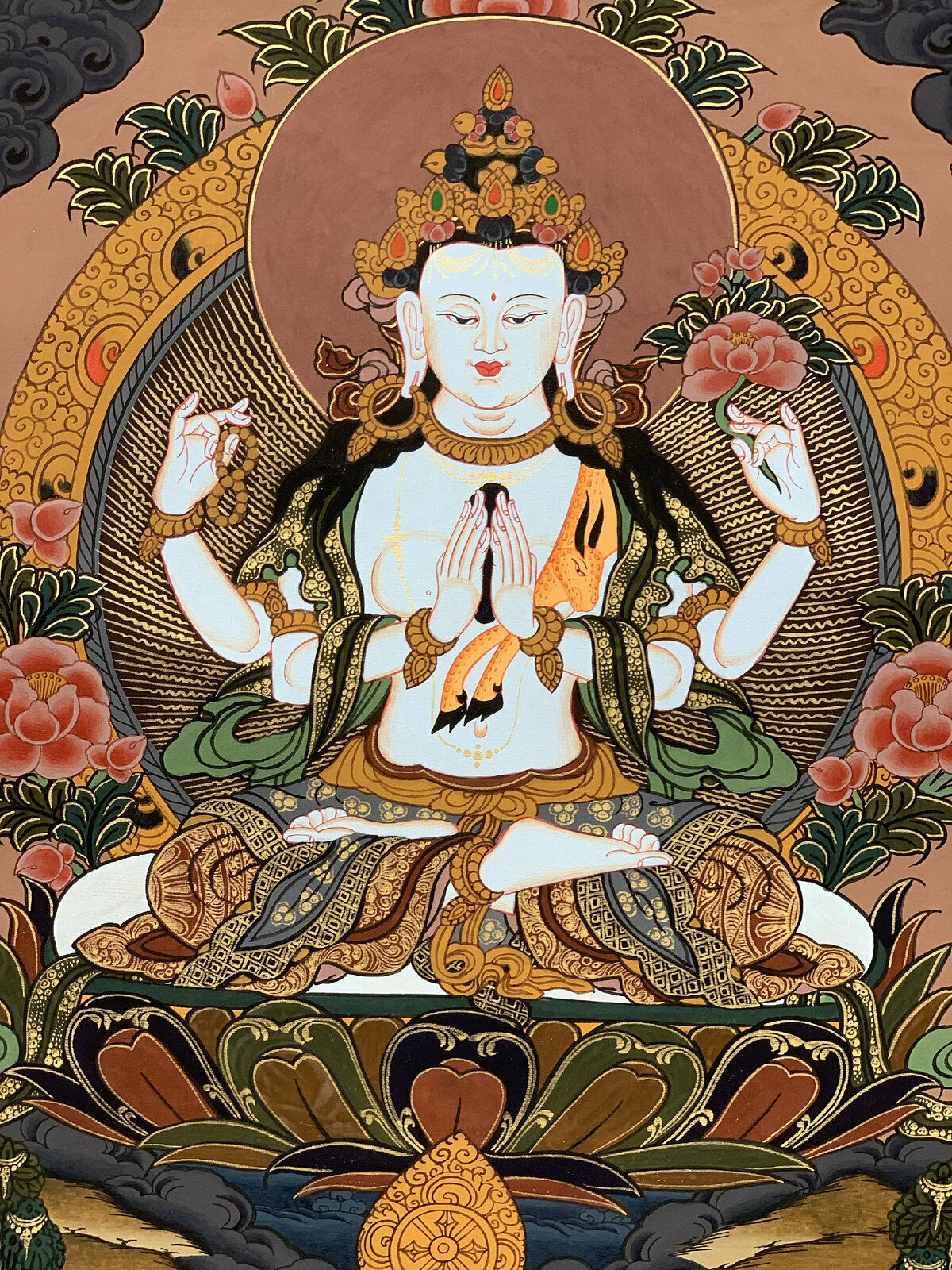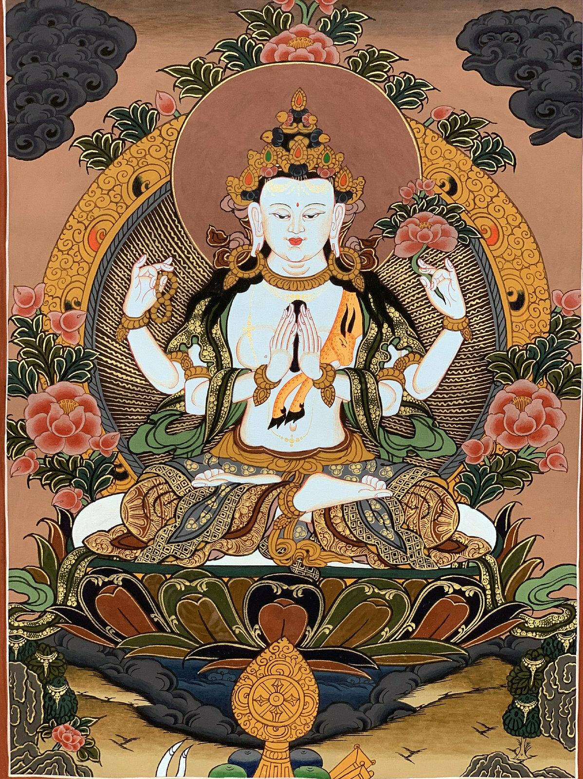 Hand-painted Avalokitesvara Tibetan Thangka Art, Painting on Canvas, 12 x 15-Inc