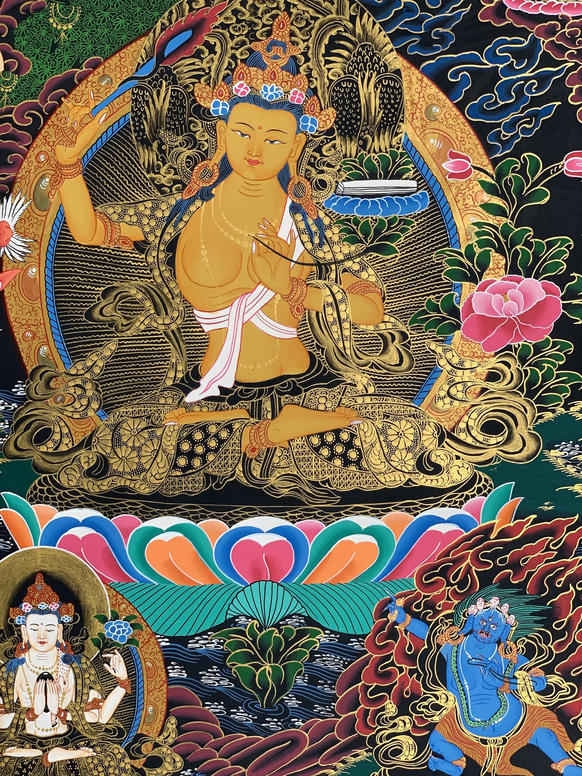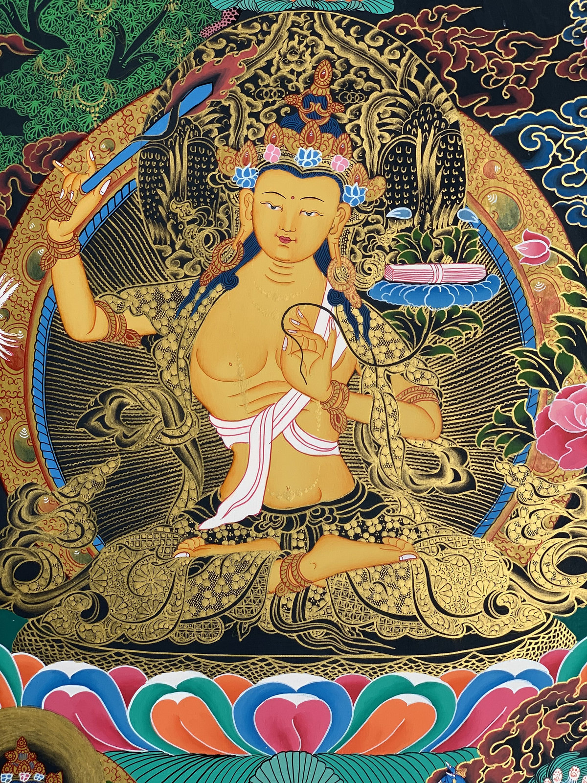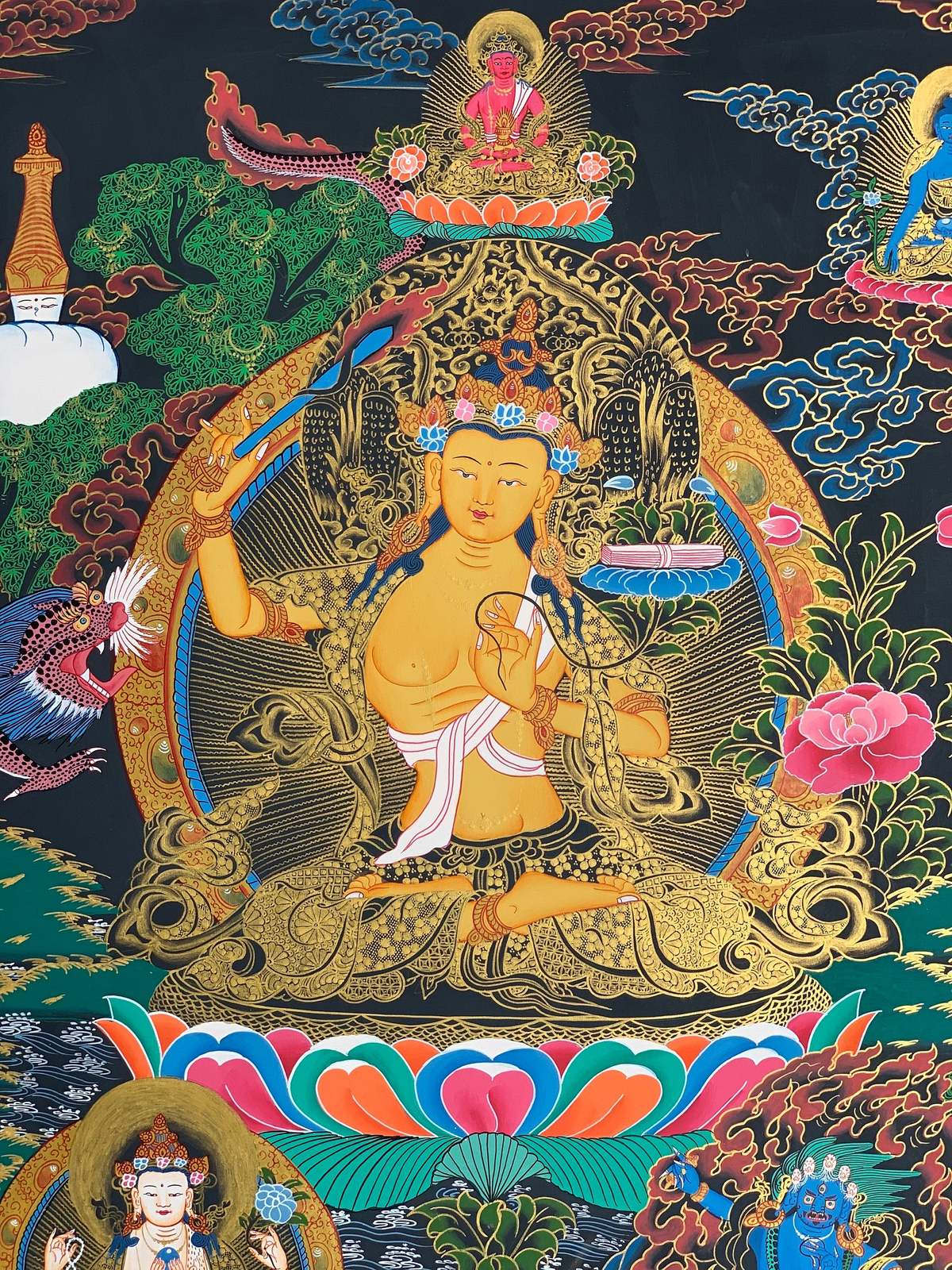 - Hand-painted Manjushree God of Wisdom Tibetan Thangka Art on Canvas 22 x 29-inch