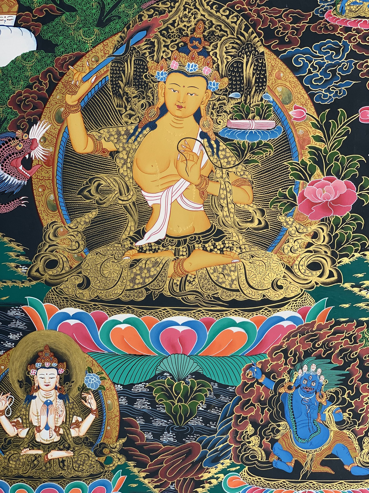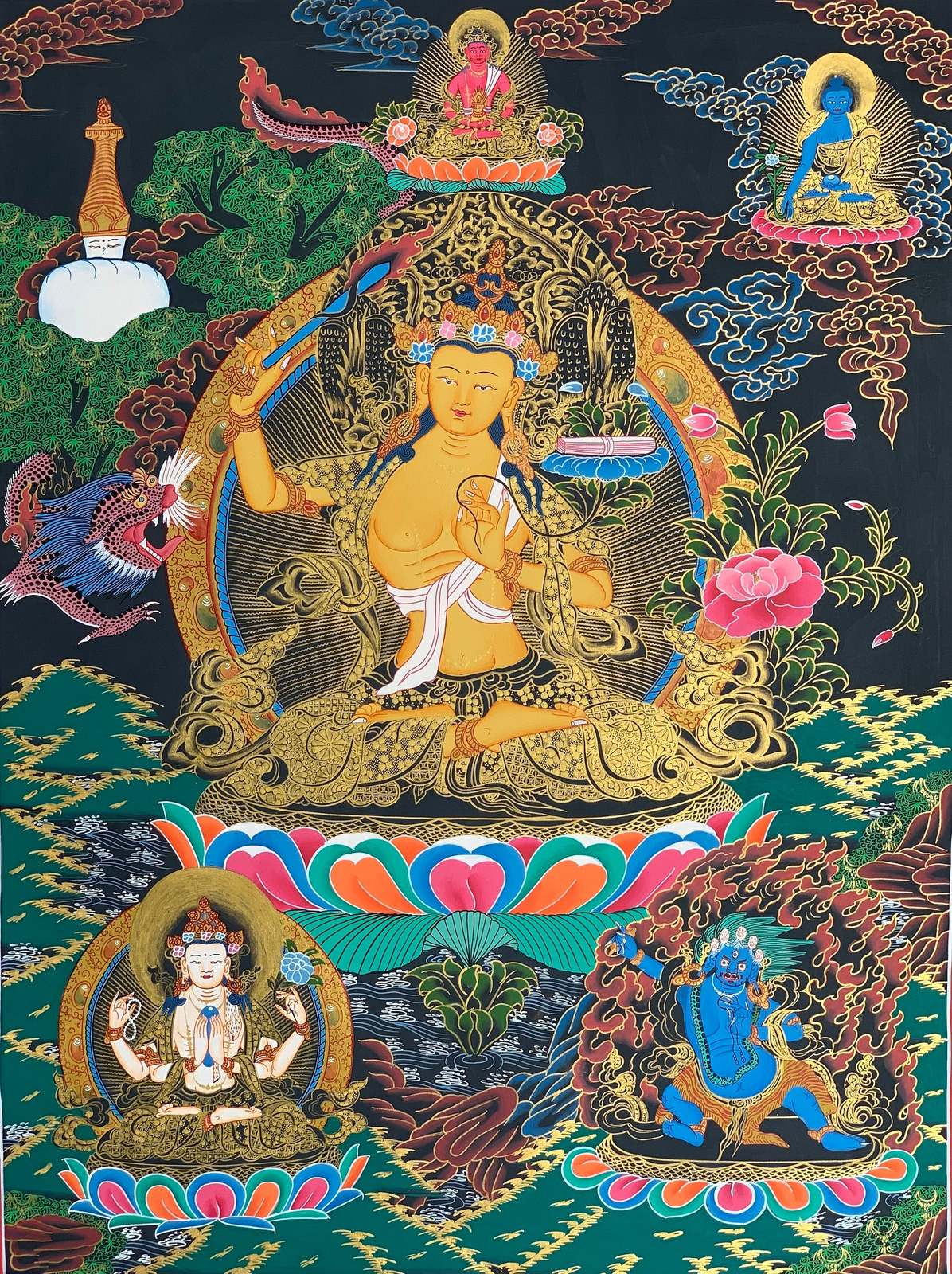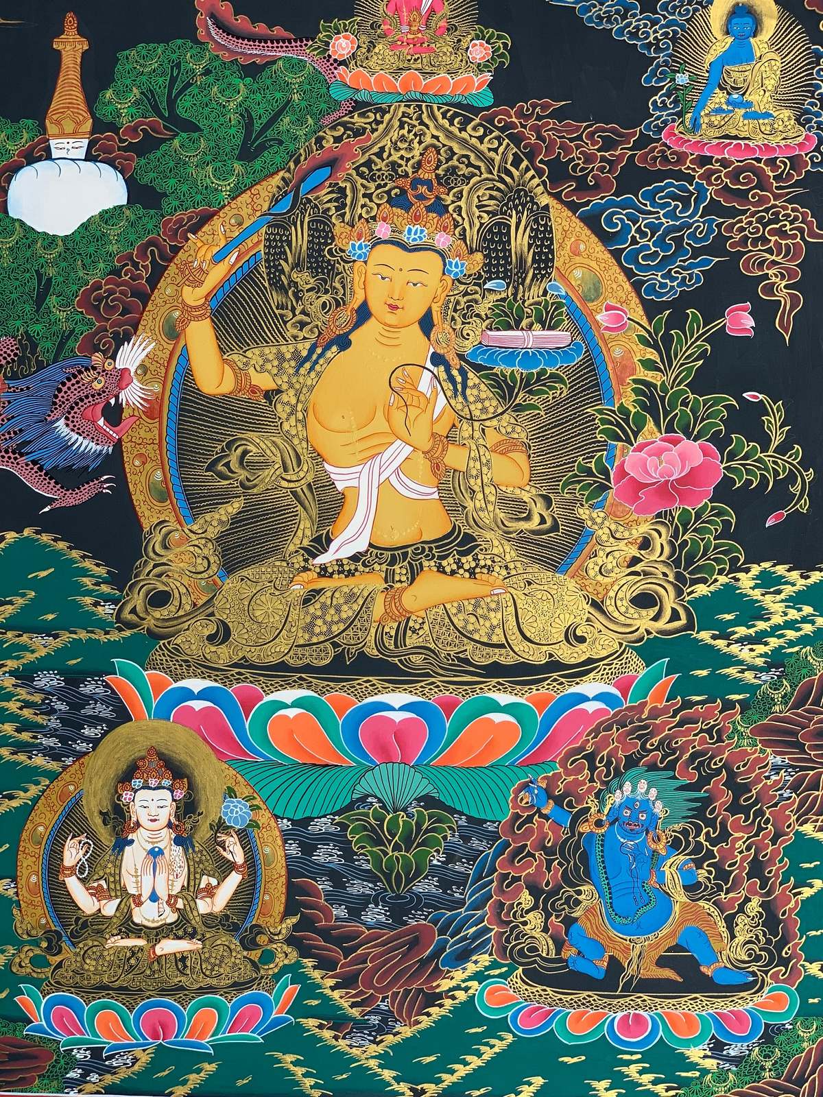 - Hand-painted Manjushree God of Wisdom Tibetan Thangka Art on Canvas 22 x 29-inch