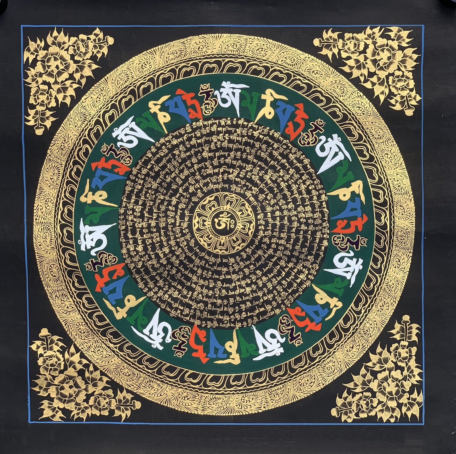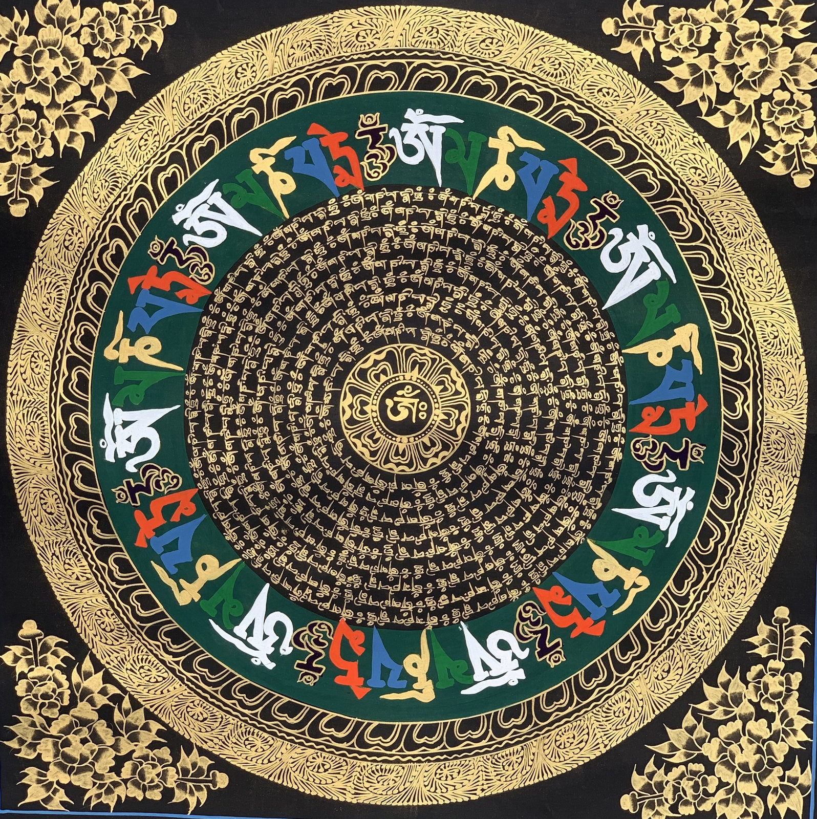 - Hand-painted Mantra Mandala Tibetan Thangka Painting, Art on Canvas, 20 x 20-in