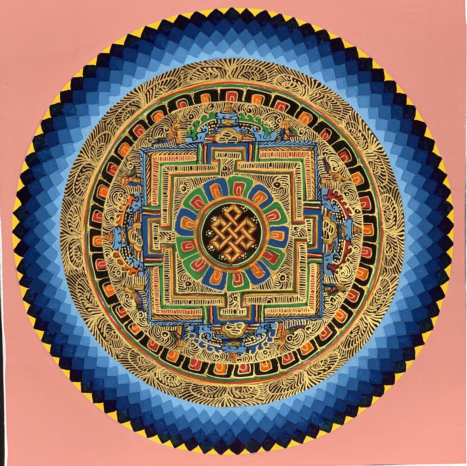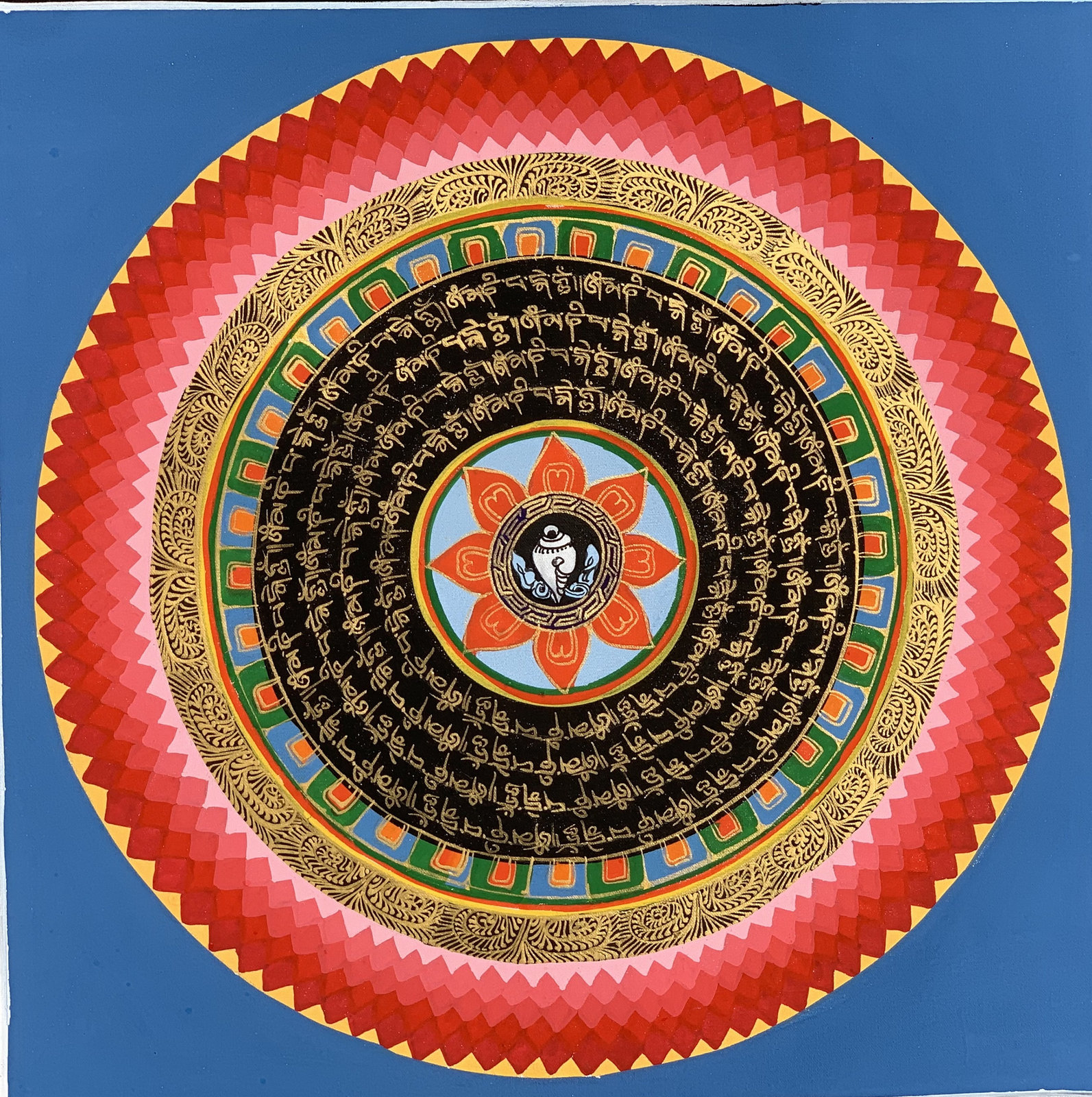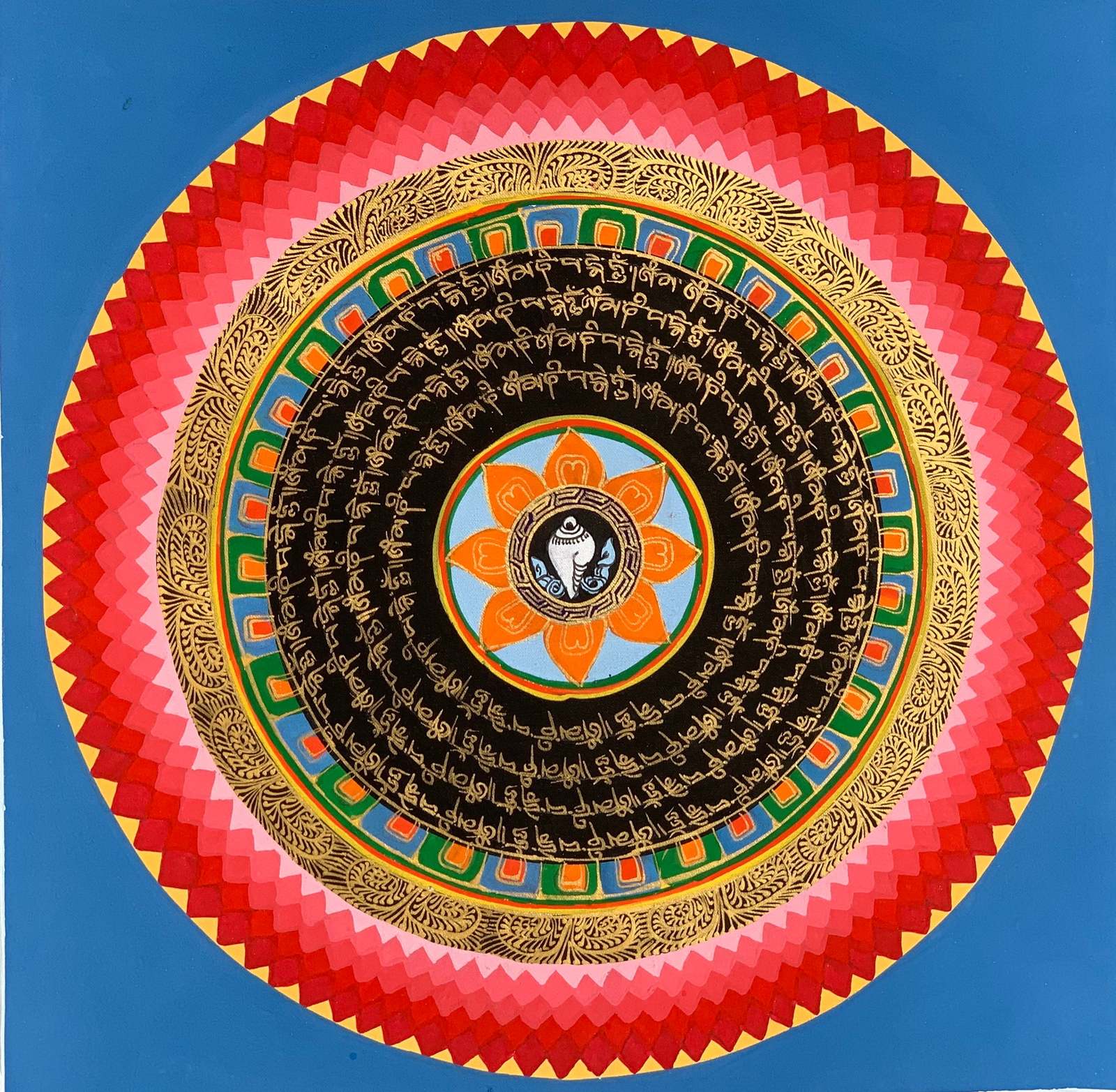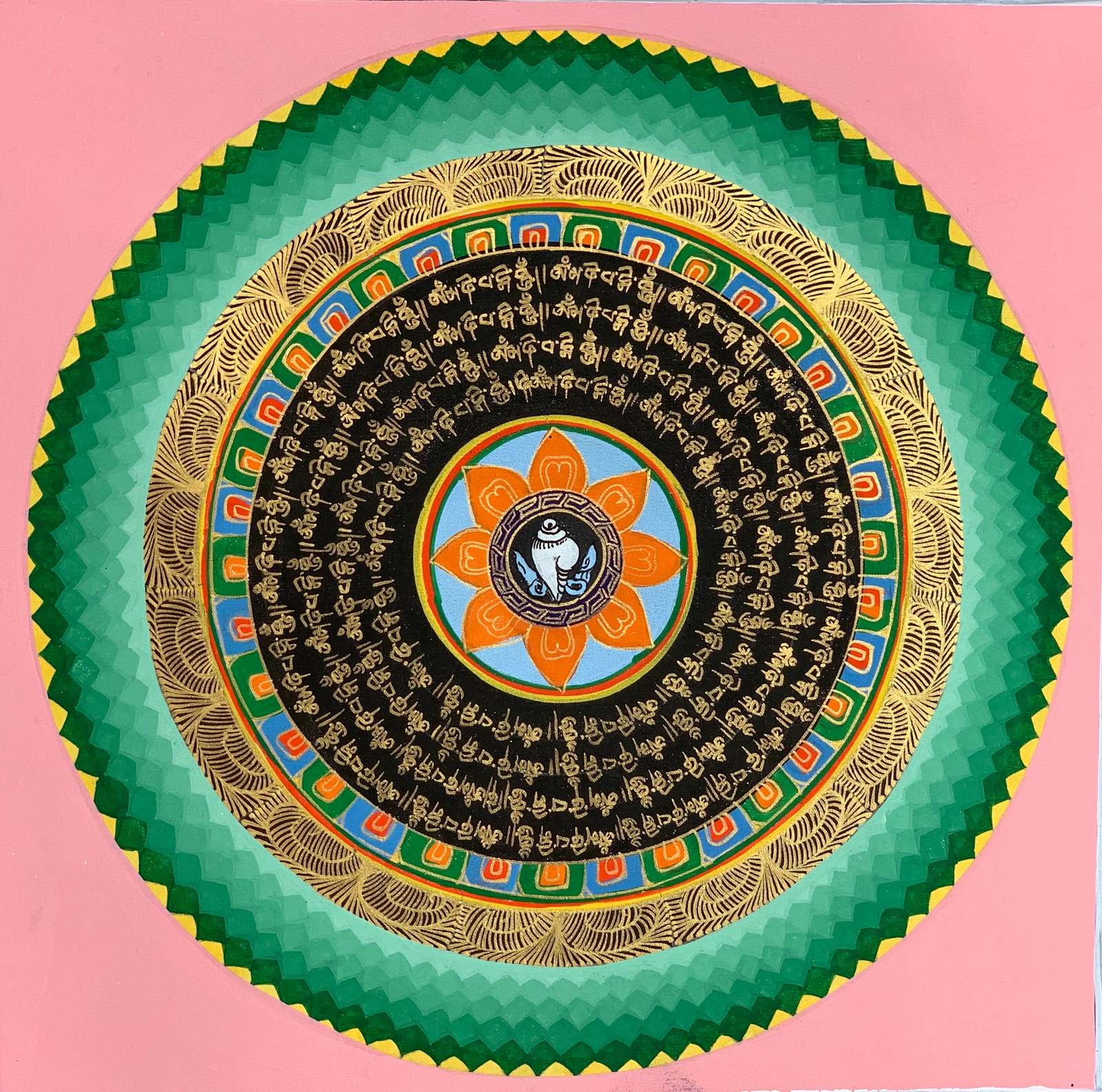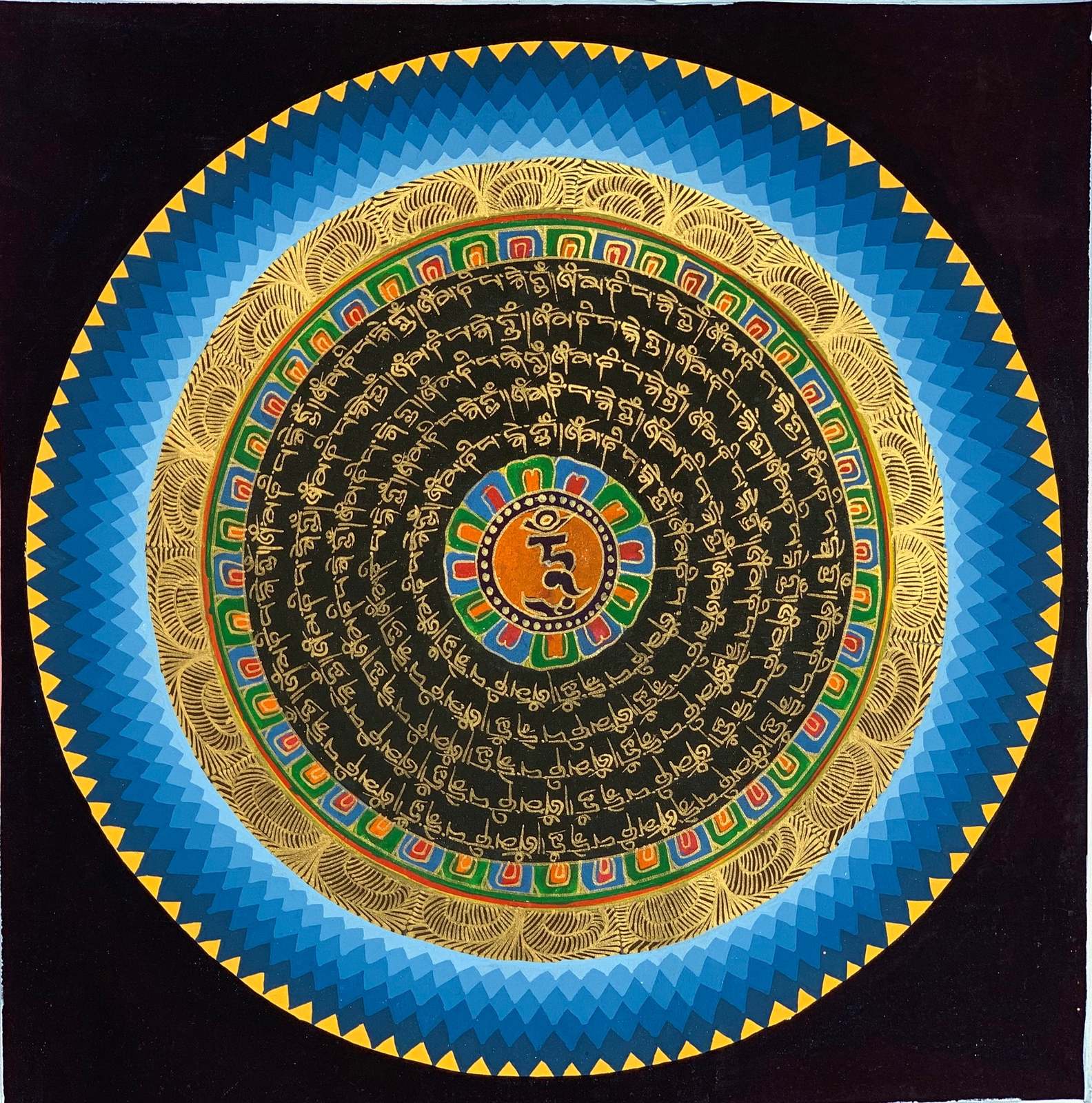 - Hand-painted Mantra Symbol Mandala Tibetan Thangka Painting, Art on Canvas, 12 x