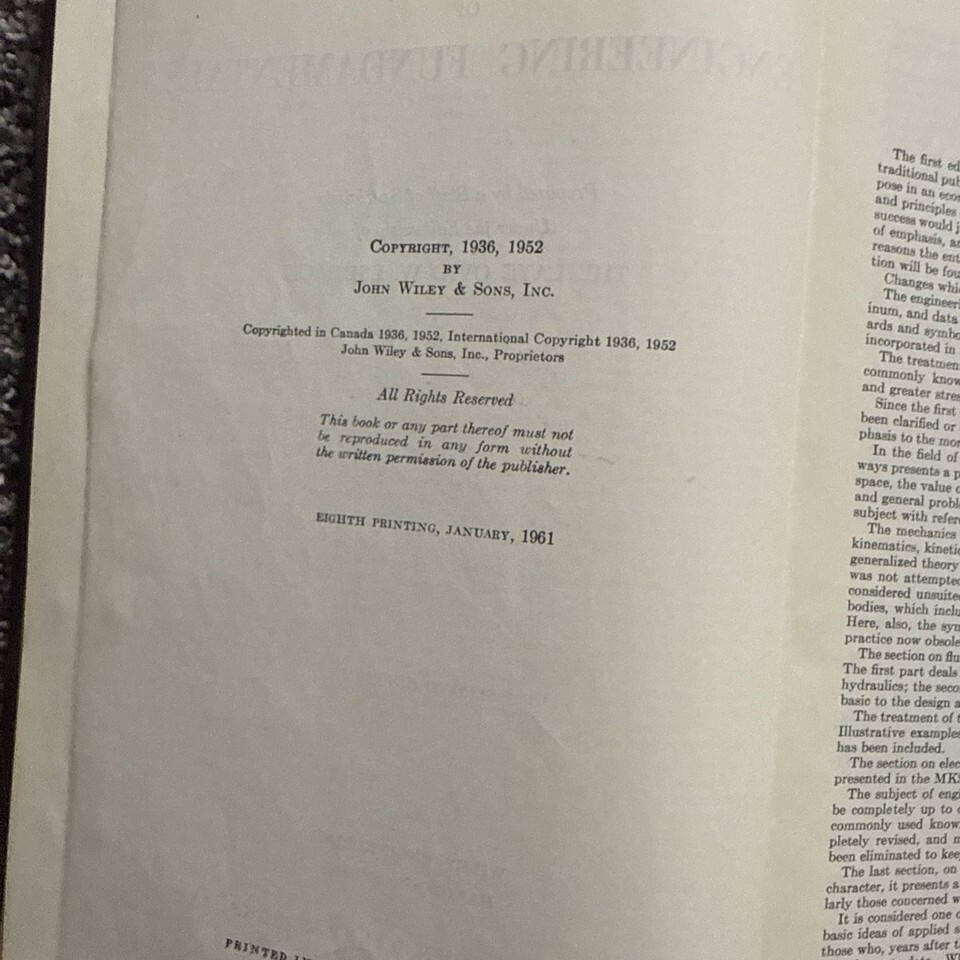 Handbook Of Engineering Fundamentals Eshbach Second Edition Eighth Printing 1961