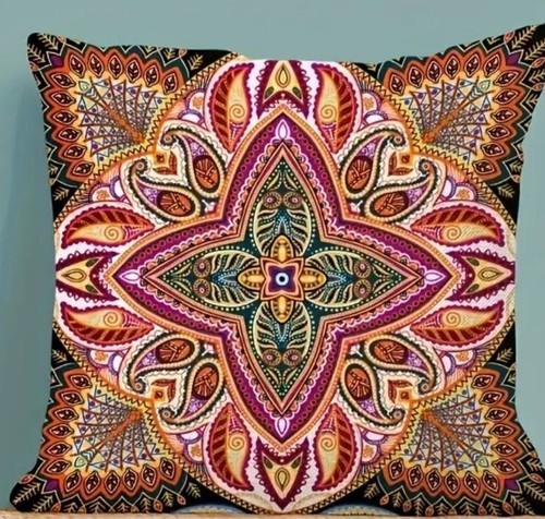 - Handcrafted ~ Bohemian Design ~ Multicolored ~ 18" Square ~ Pillow Cover ~ (1)