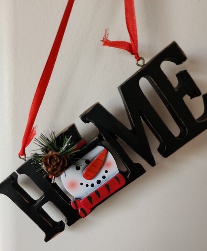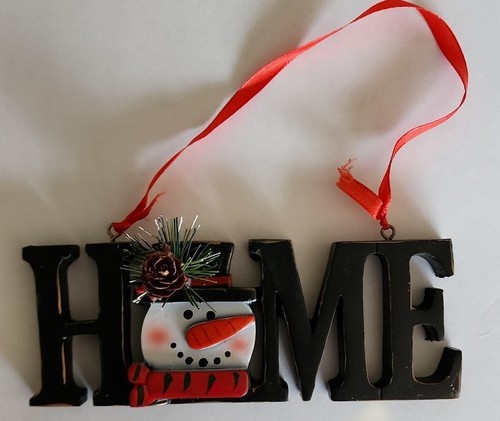 - Handcrafted ~ HOME ~ Cast Ceramic~ Hanging Ornament Decoration w/SNOWMAN Design