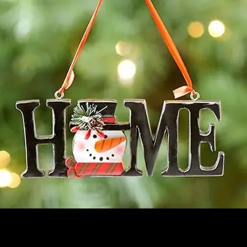 Handcrafted ~ HOME ~ Cast Ceramic~ Hanging Ornament Decoration w/SNOWMAN Design