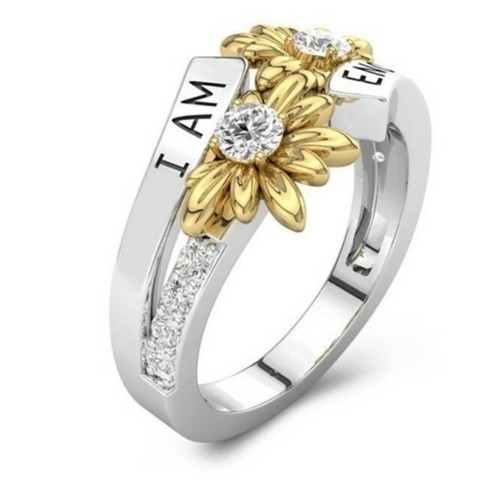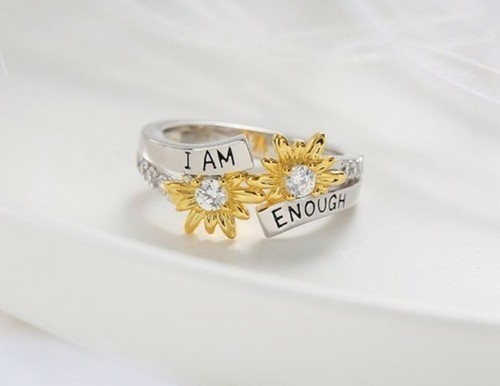 - Handcrafted ~ Inspirational ~ I AM ENOUGH Sunflower ~ Size 11 Ring