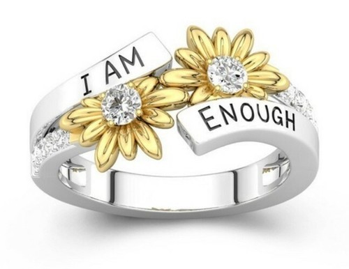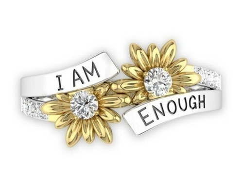 Handcrafted ~ Inspirational ~ I AM ENOUGH Sunflower ~ Size 11 Ring