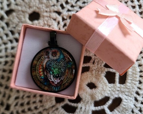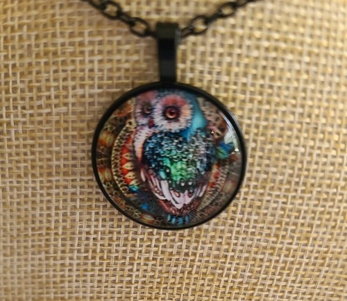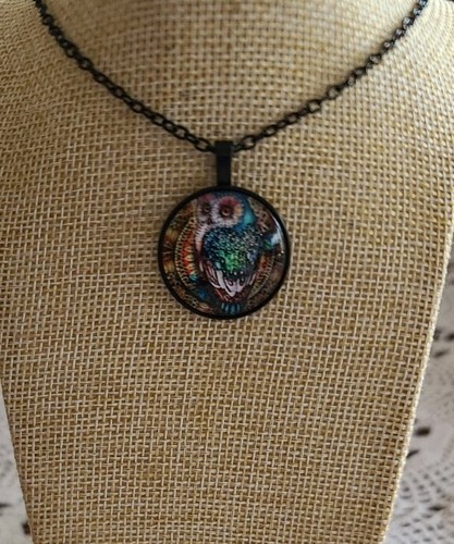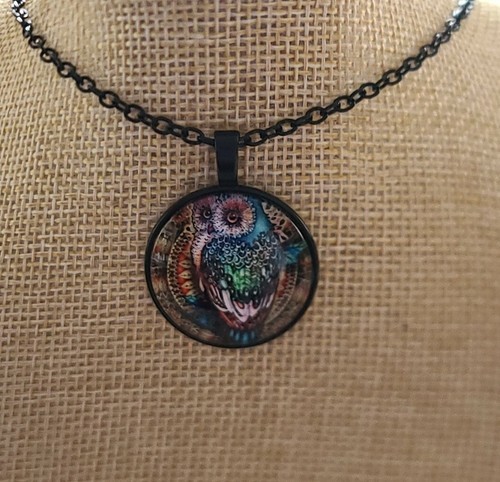 - Handcrafted ~ Multi-colored OWL ~ Black Hardware ~ Alloy ~ 10.75" Long Necklace