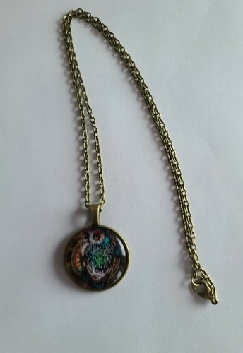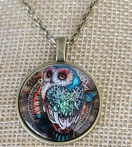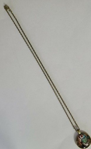 Handcrafted ~ Multi-colored OWL ~ Bronze Hardware ~ Alloy ~ 10.75" Long Necklace
