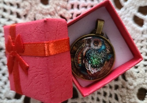 Round ~ OWL pendant measures approximately 1"