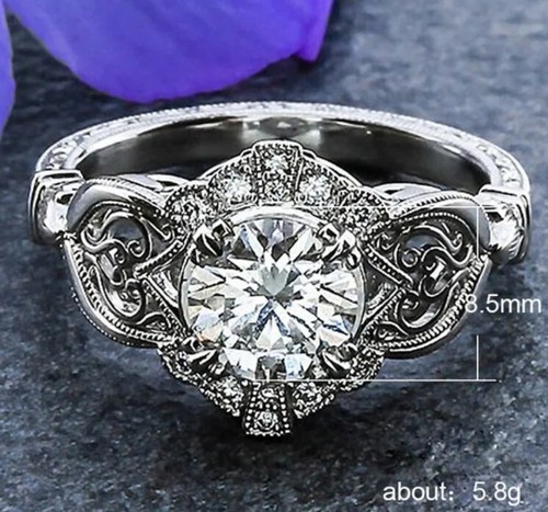 Silver in color band with Moissanite ~ faux diamond gemstones