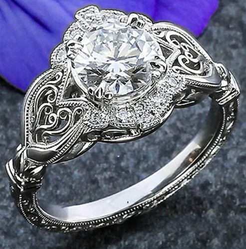 - Handcrafted ~ Natural White ~ Faux Diamonds ~ Textured ~ Embossed ~ Size 11 Ring