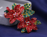 - Handcrafted Rhinestone Poinsettias Christmas Brooch Pin