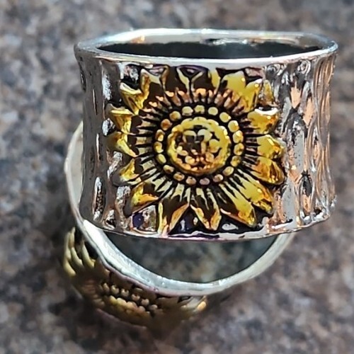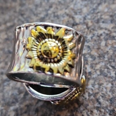 This Sale is for One (1) Hand-Crafted ~ Wide Band Ring with Sunflower