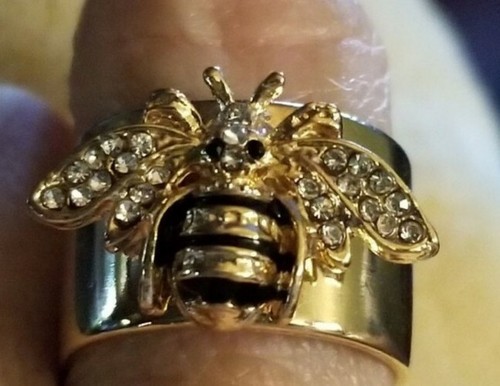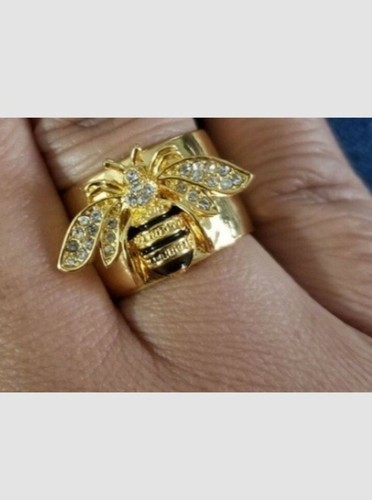 - Handcrafted ~ Size 9 ~ Gold Plated ~ Bumble Bee ~ Wide Band Ring