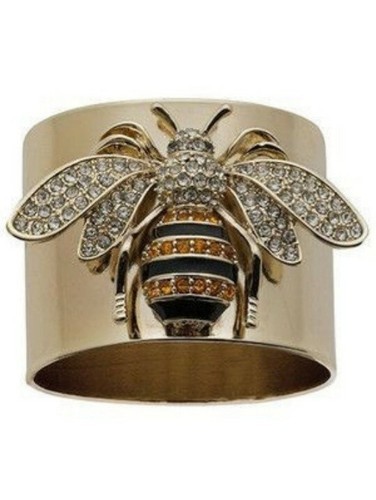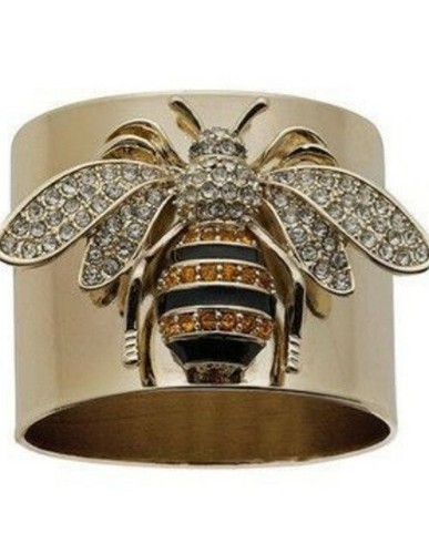 Wide band ring with a bumblebee attached to topside
