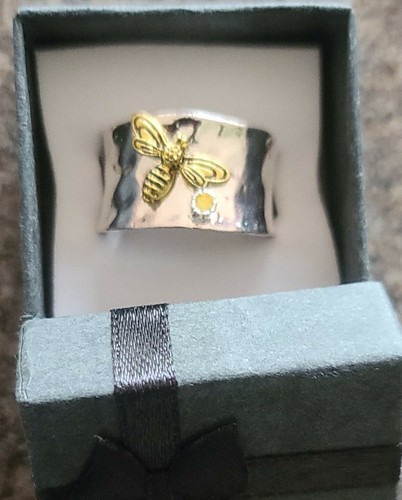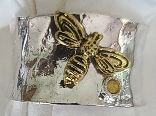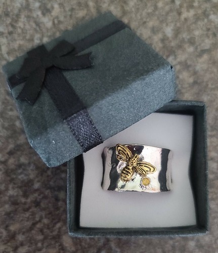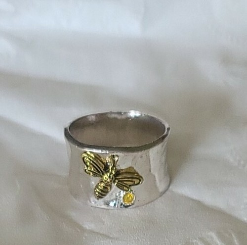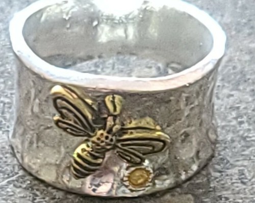 - Handcrafted ~ Women's Size 8 ~ Silver ~ Hammered ~ Honey Bee ~ Wide Band Ring