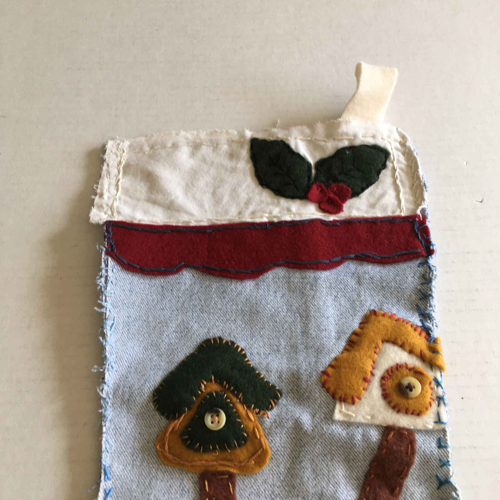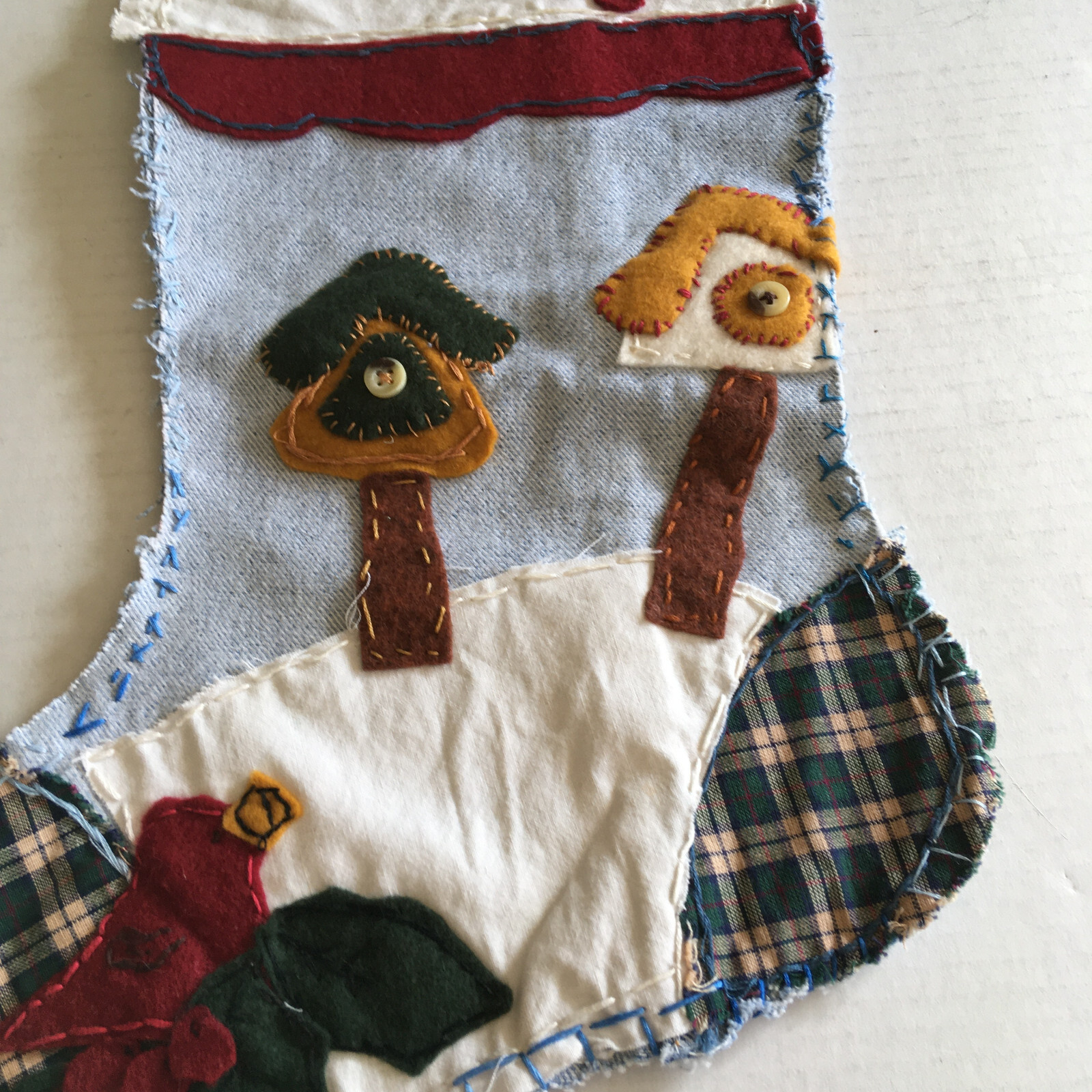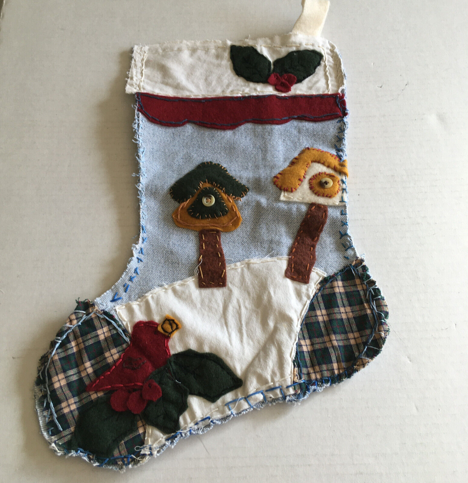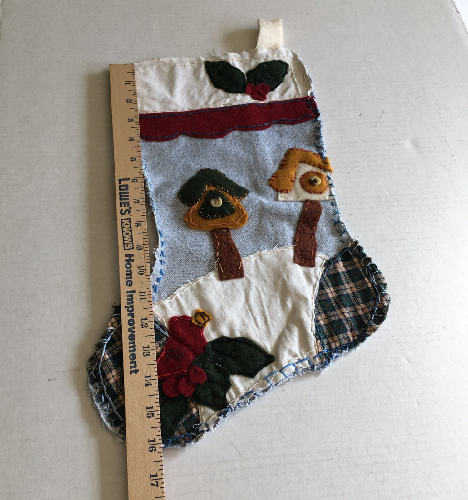 - Handcrafted upcycled repurposed fabric primitive country Christmas stocking