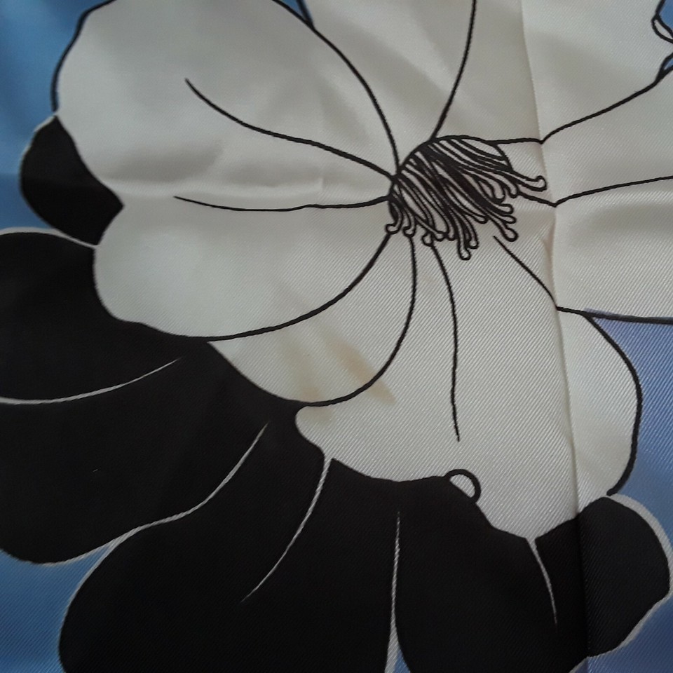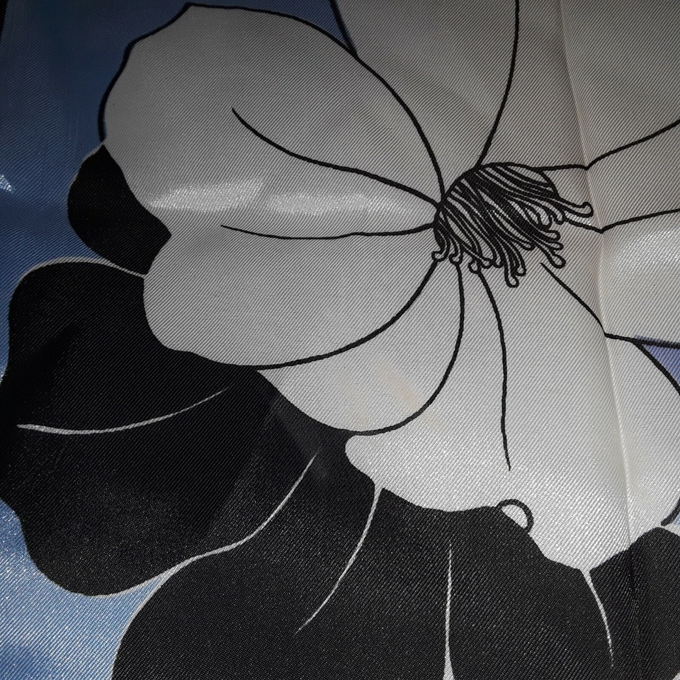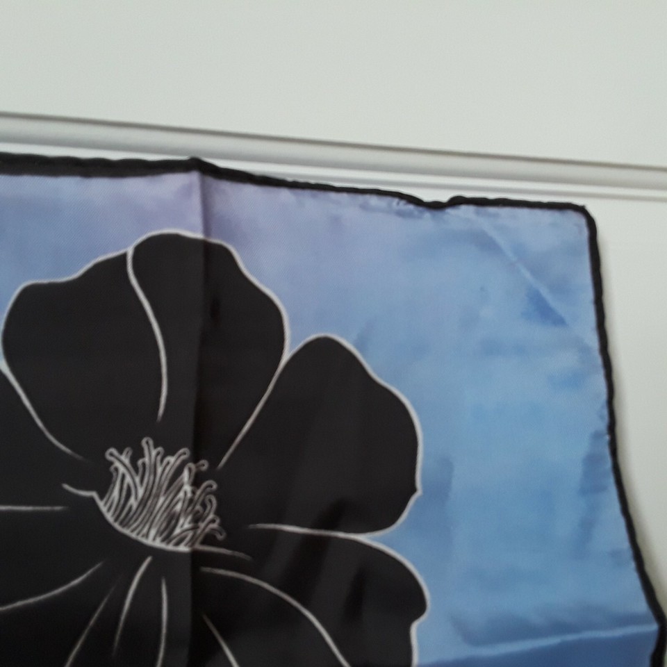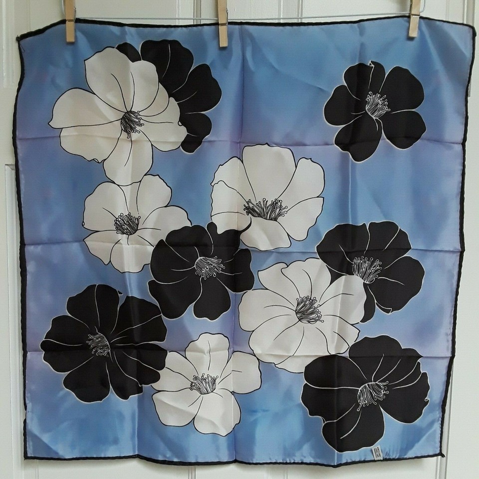 - Handkerchief 100% Acetate made in Japan blue with flowers Approx 22" x 23" vtg