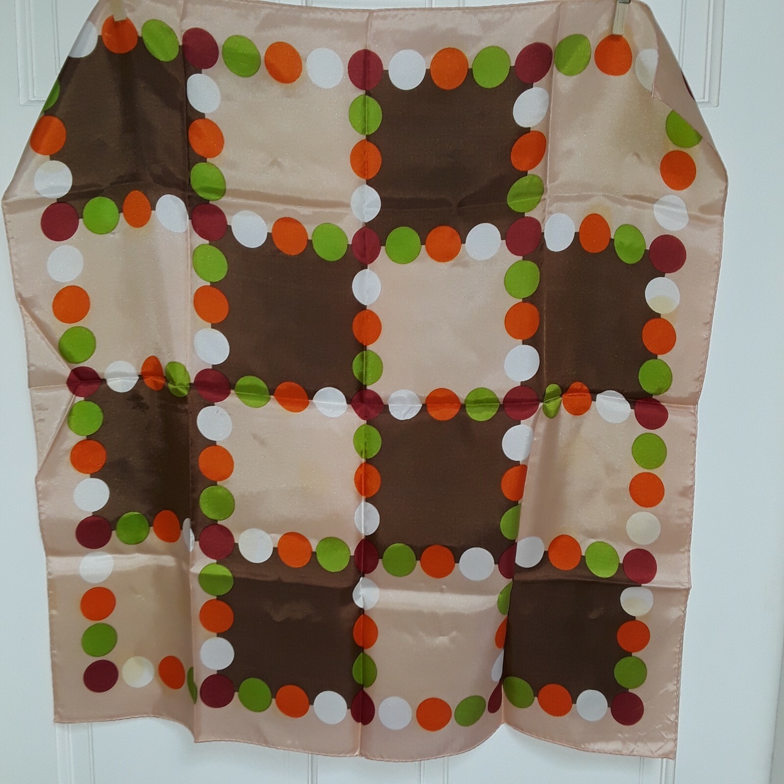 - Handkerchief brown, beige, green, orange ~ Approximately 26" x 26" vintage
