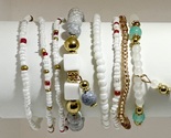 - Handmade Beaded Bracelet Set, White Marble and Gold, Multi-Strand Stretch Design
