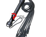 - Handmade Black Leather Flogger Whip BDSM 09 Tails Braided Handle Fetish